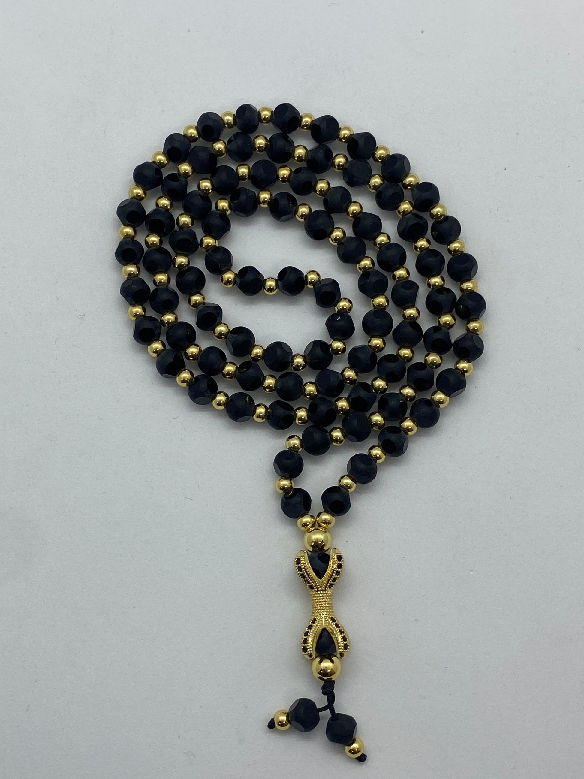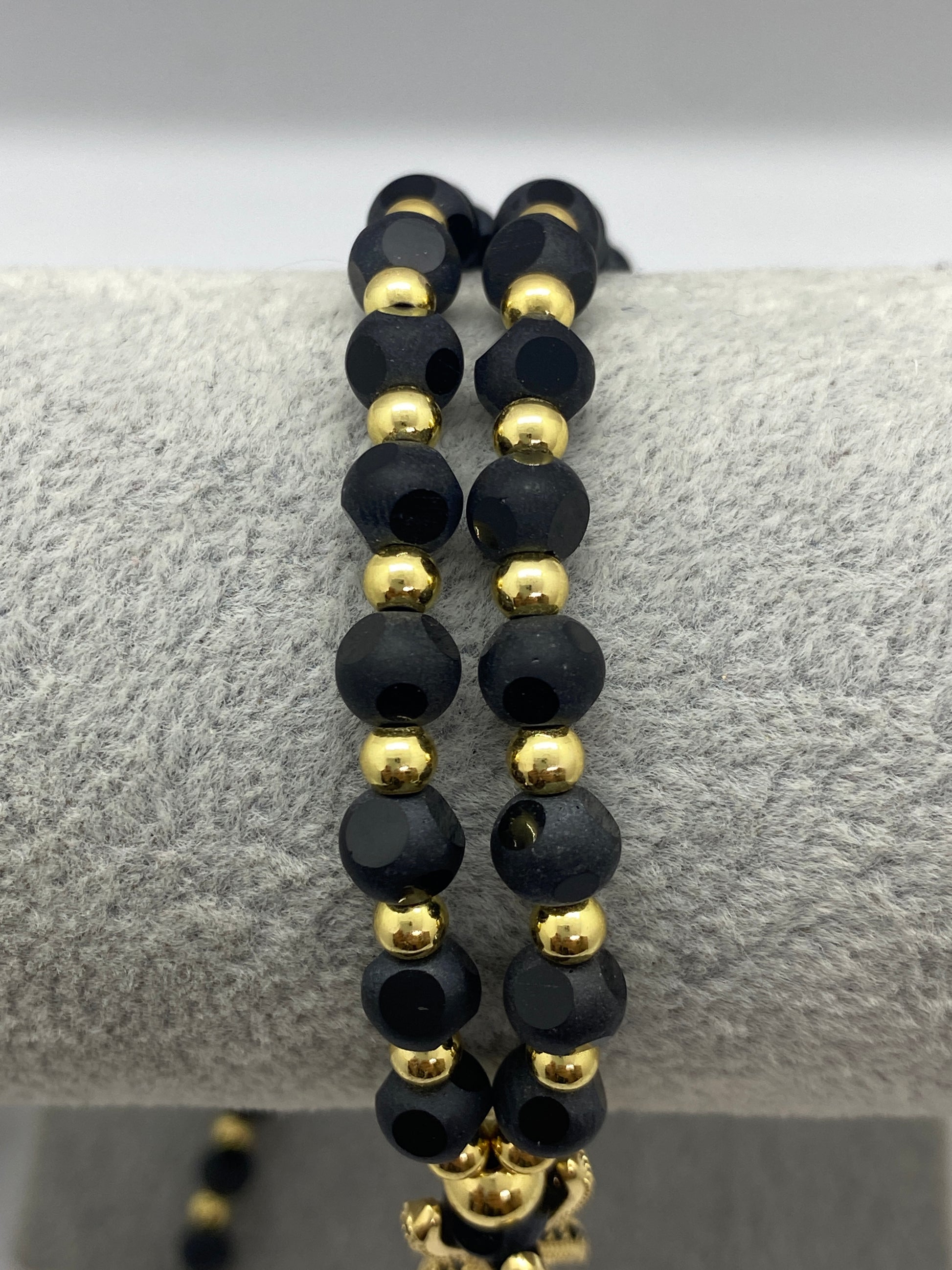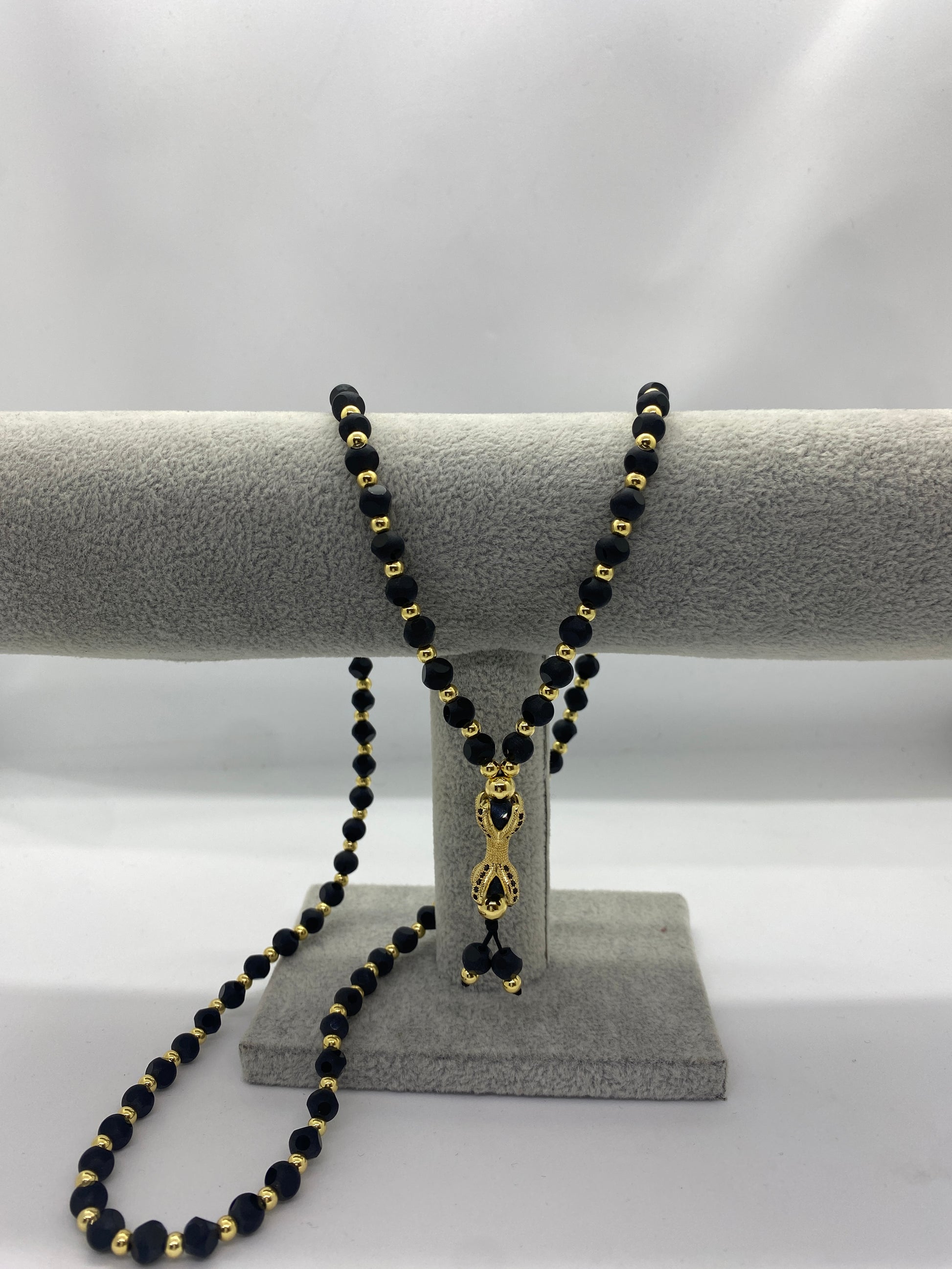 Lanțul 'Black Gold Claw' reprezintă o declarație de rafinament, cu o construcție robustă din bile de piatră și o gheară în culori contrastante de aur și negru.