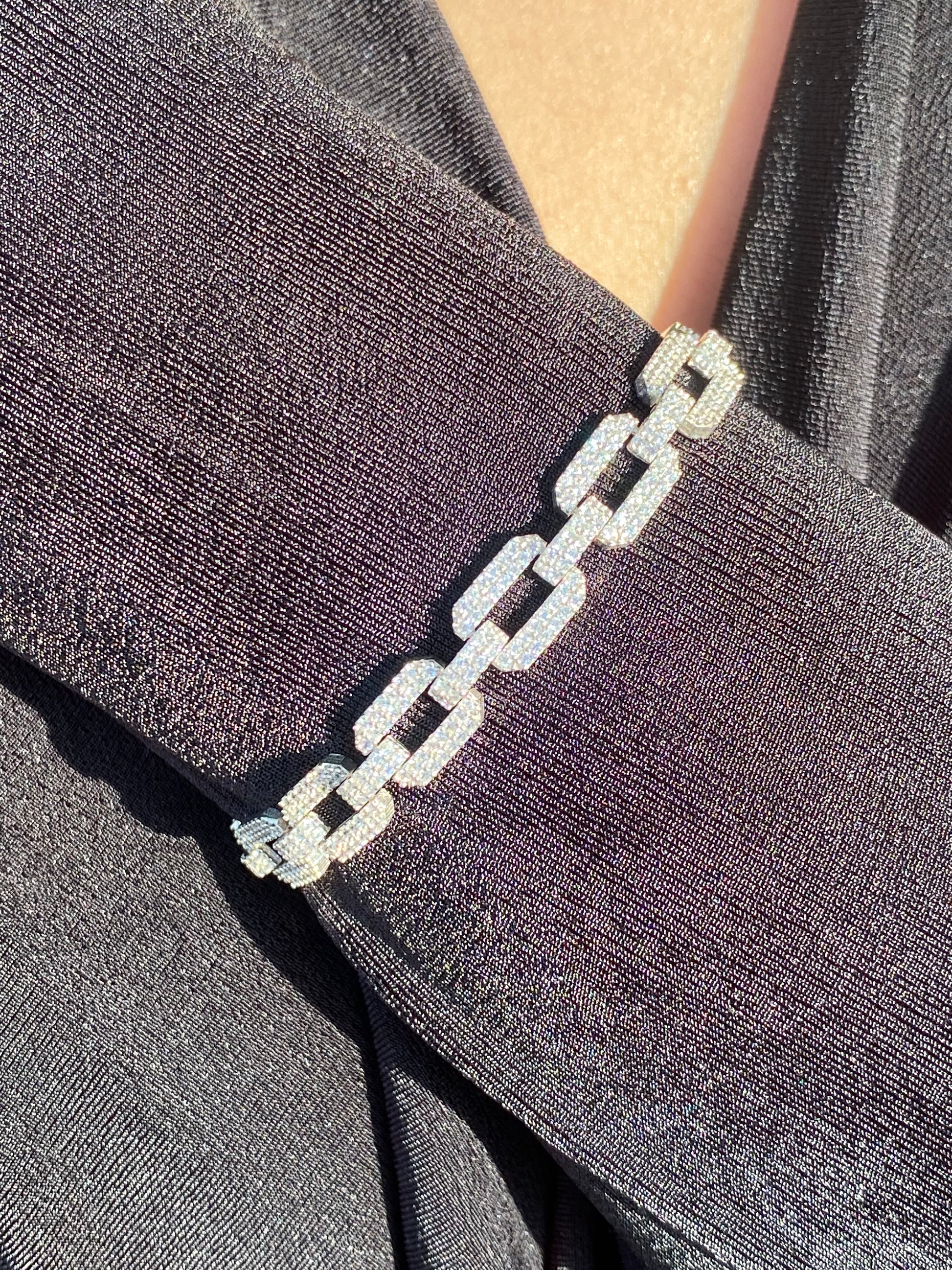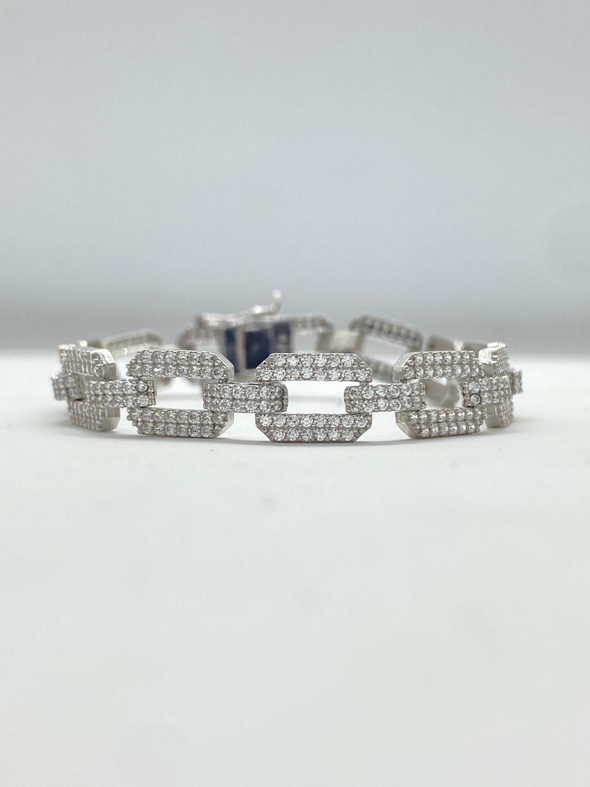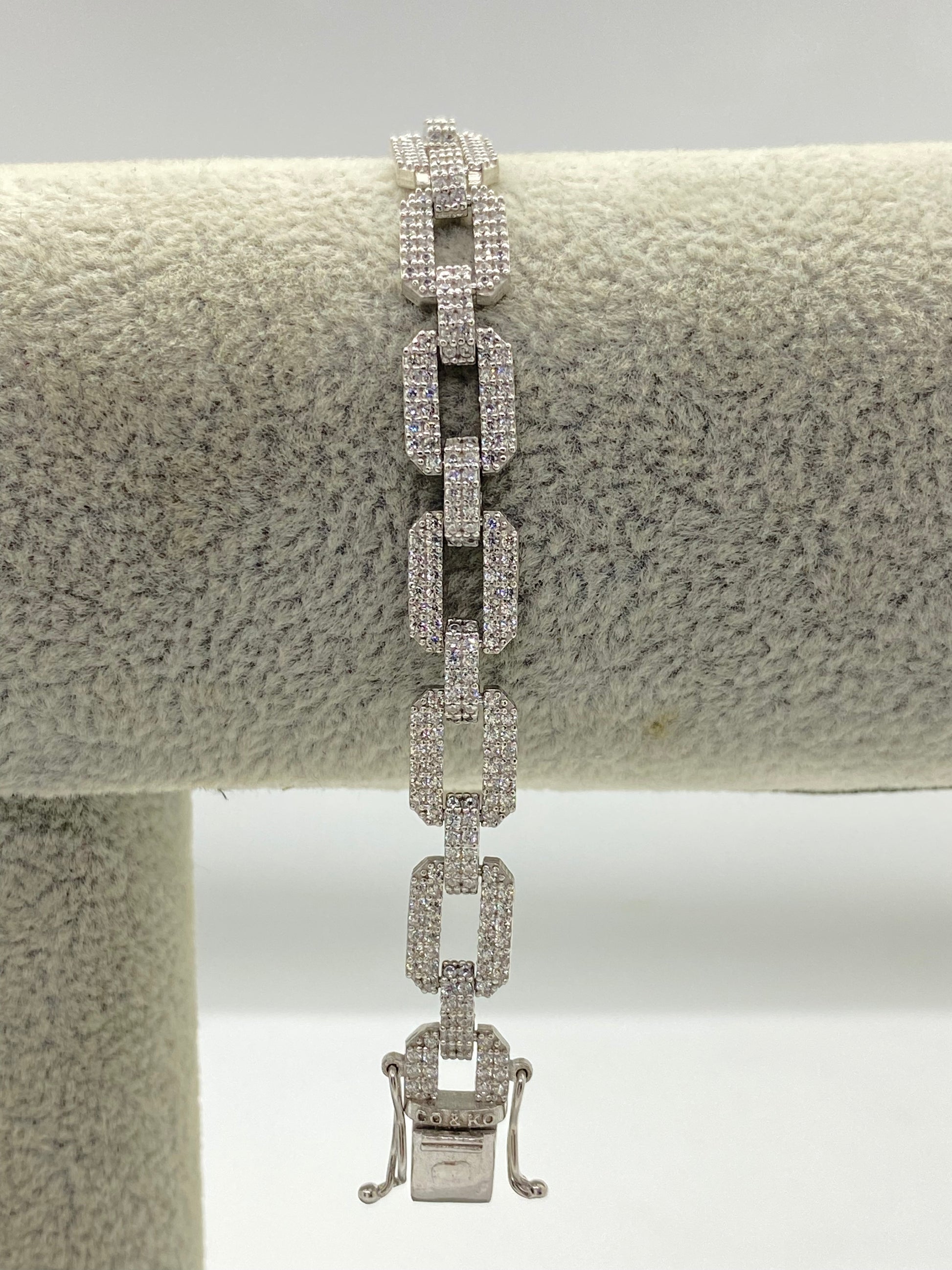 Adaugă un strop de eleganță încheieturii tale cu această brățară din argint 925 rodiat, finisată impecabil și decorată cu pietricele de zirconiu cubic strălucitor. Realizată din argint de înaltă calitate, brățara este protejată cu un strat de rhodiu, care îi conferă un luciu deosebit, rezistență la oxidare și un aspect rafinat, perfect pentru orice ocazie.