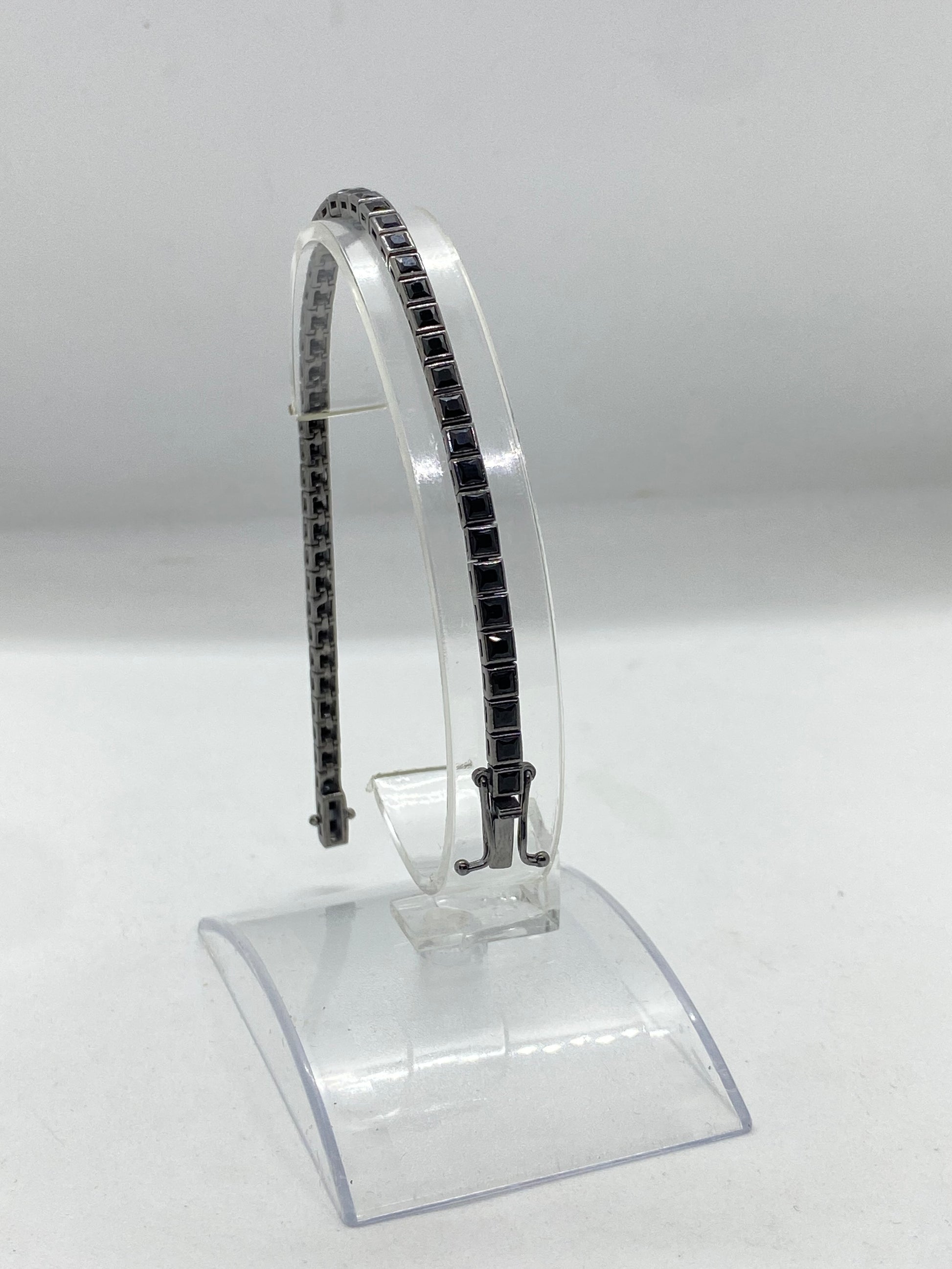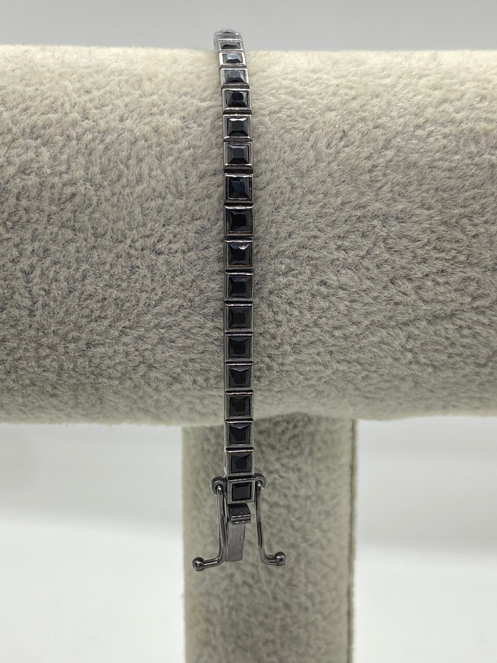 Inspirată din stilul clasic tennis, reinterpretată într-o versiune modernă și misterioasă. Brățara Tennis Square Black este realizată din argint 925 rodiat și împodobită cu zirconiu cubic negru, tăiat pătrat – pentru un look puternic, rafinat și versatil.