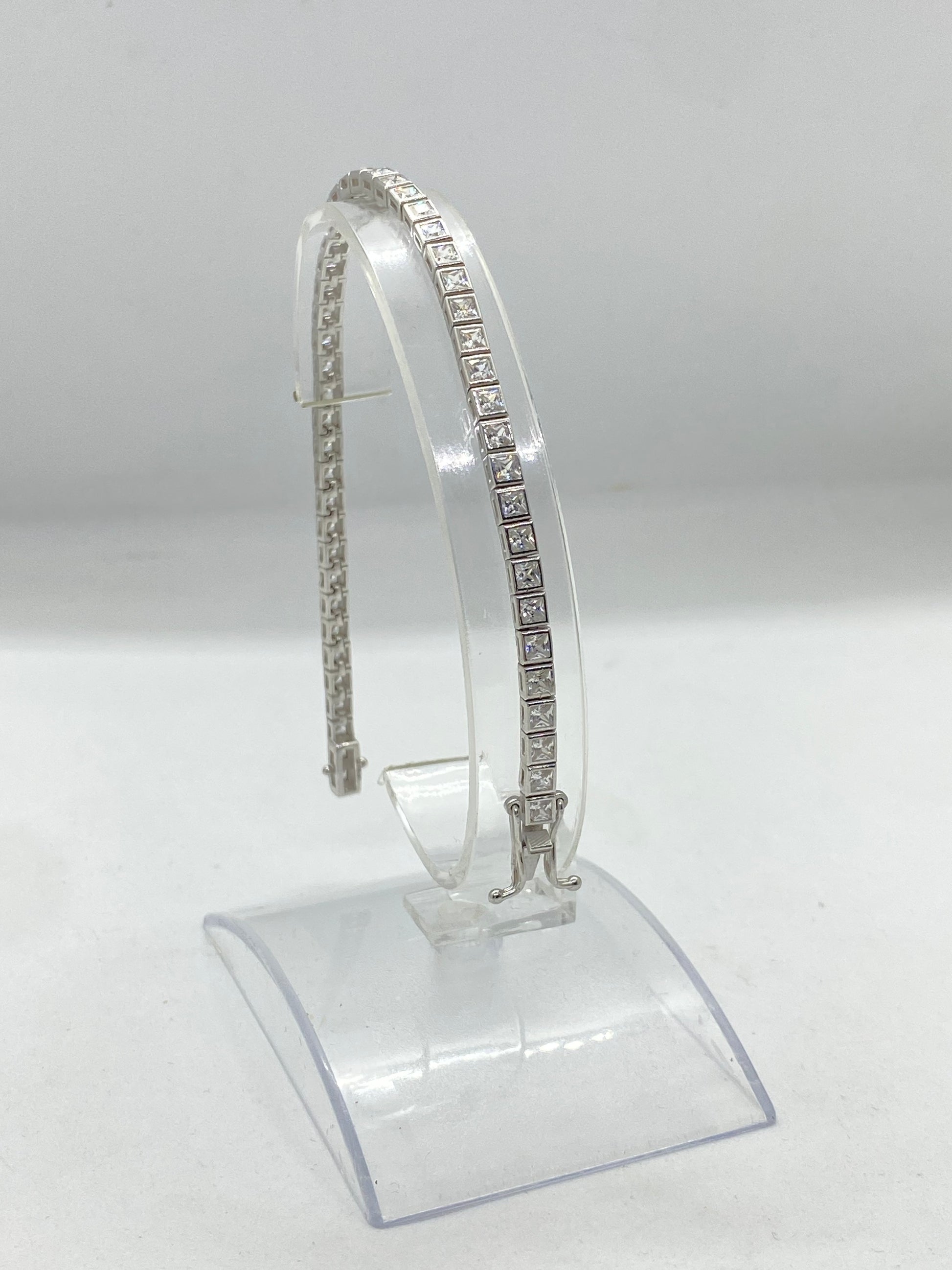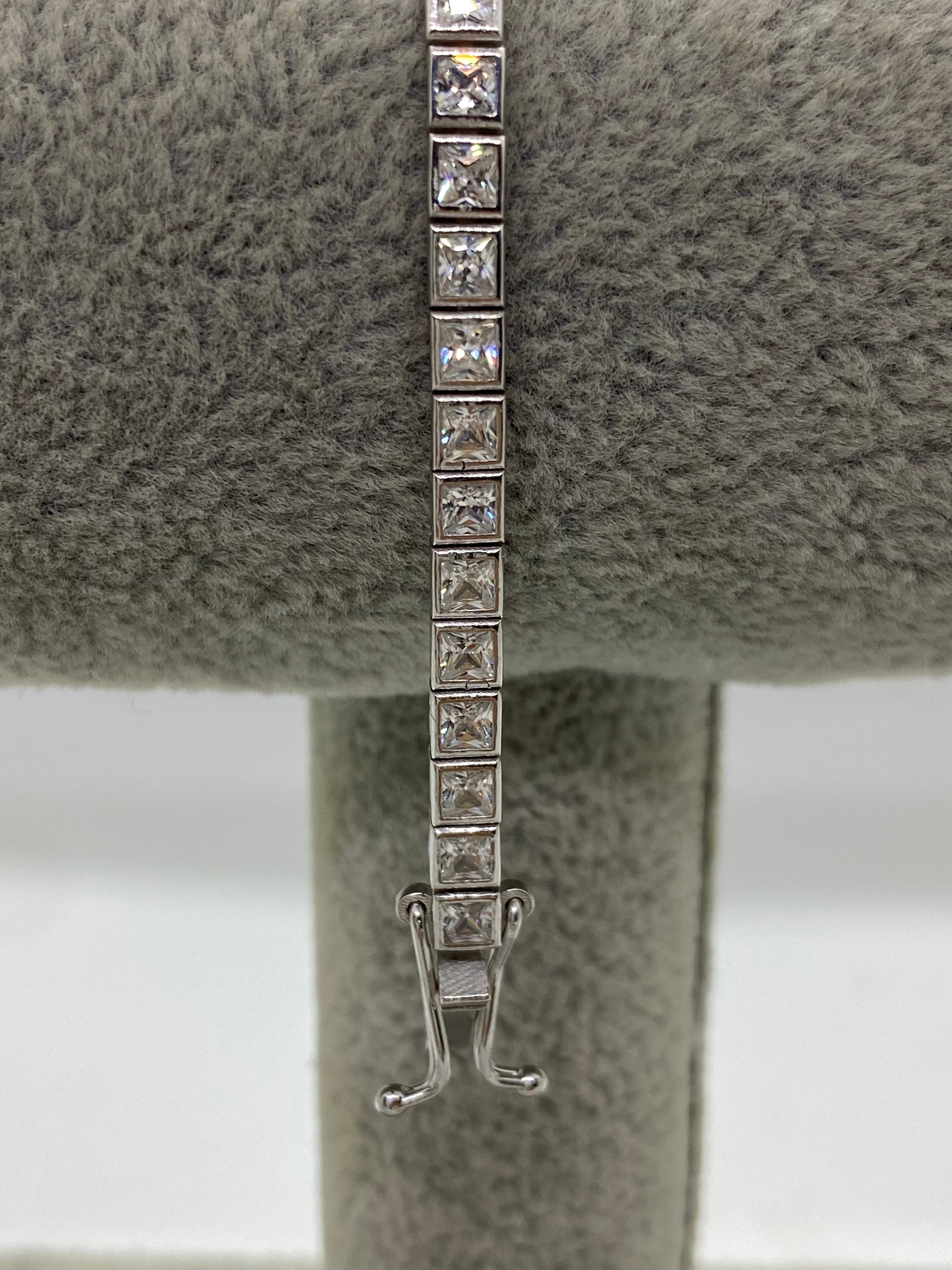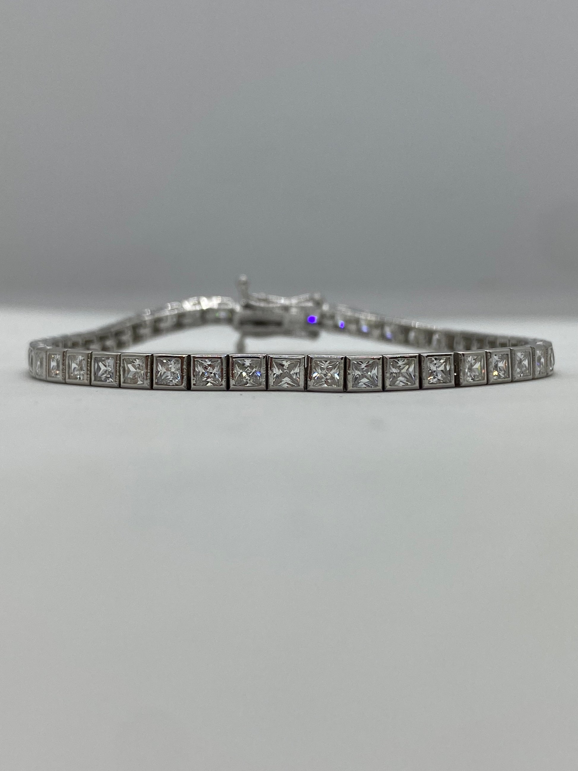 Descoperă rafinamentul unei bijuterii atemporale. Brățara Tennis Square este realizată din argint 925 rodiat, un material prețios care oferă strălucire de lungă durată și protecție împotriva oxidării. Decorată cu pietre de zirconiu cubic tăiate pătrat, această brățară adaugă un plus de eleganță oricărei ținute.