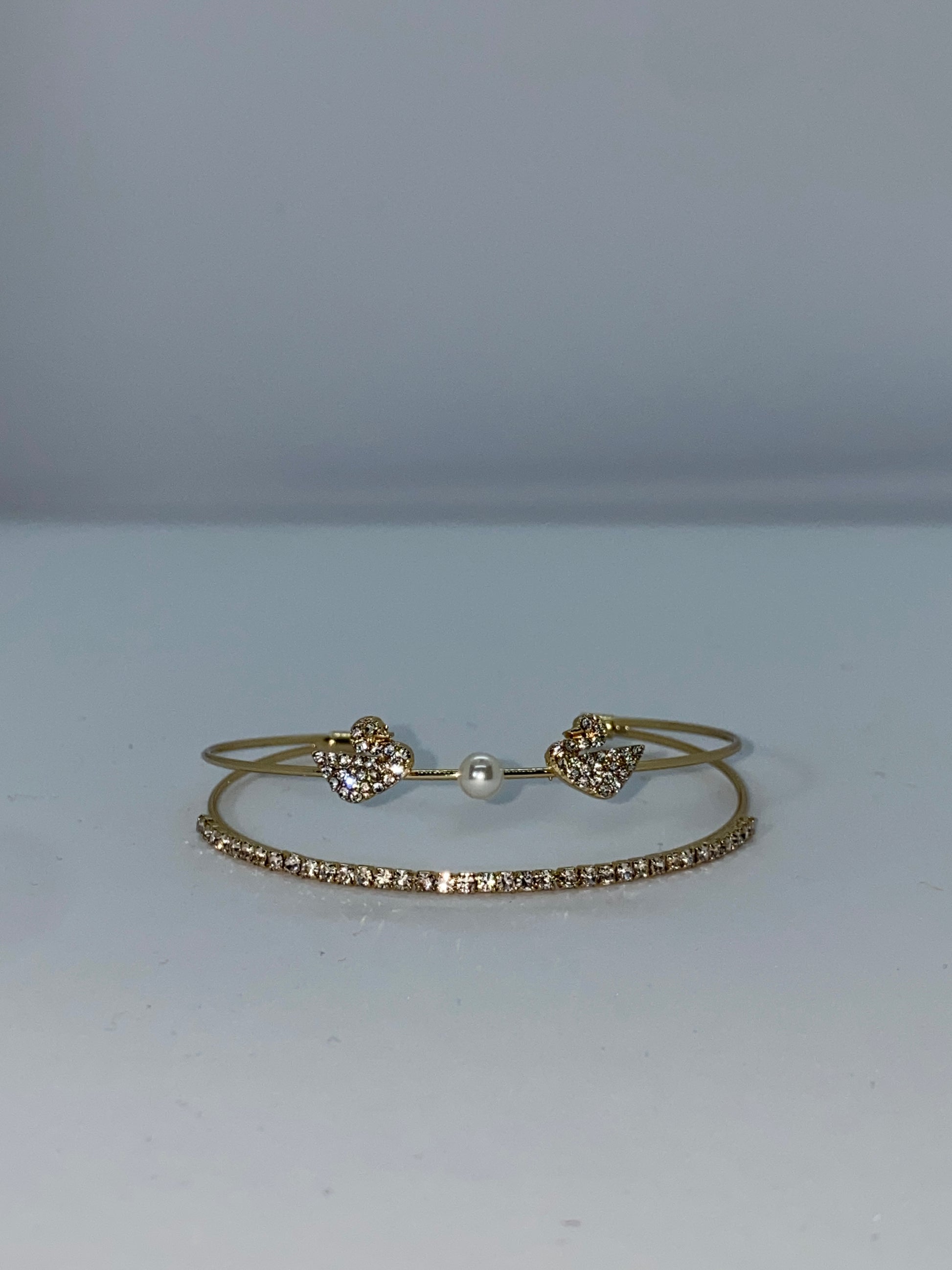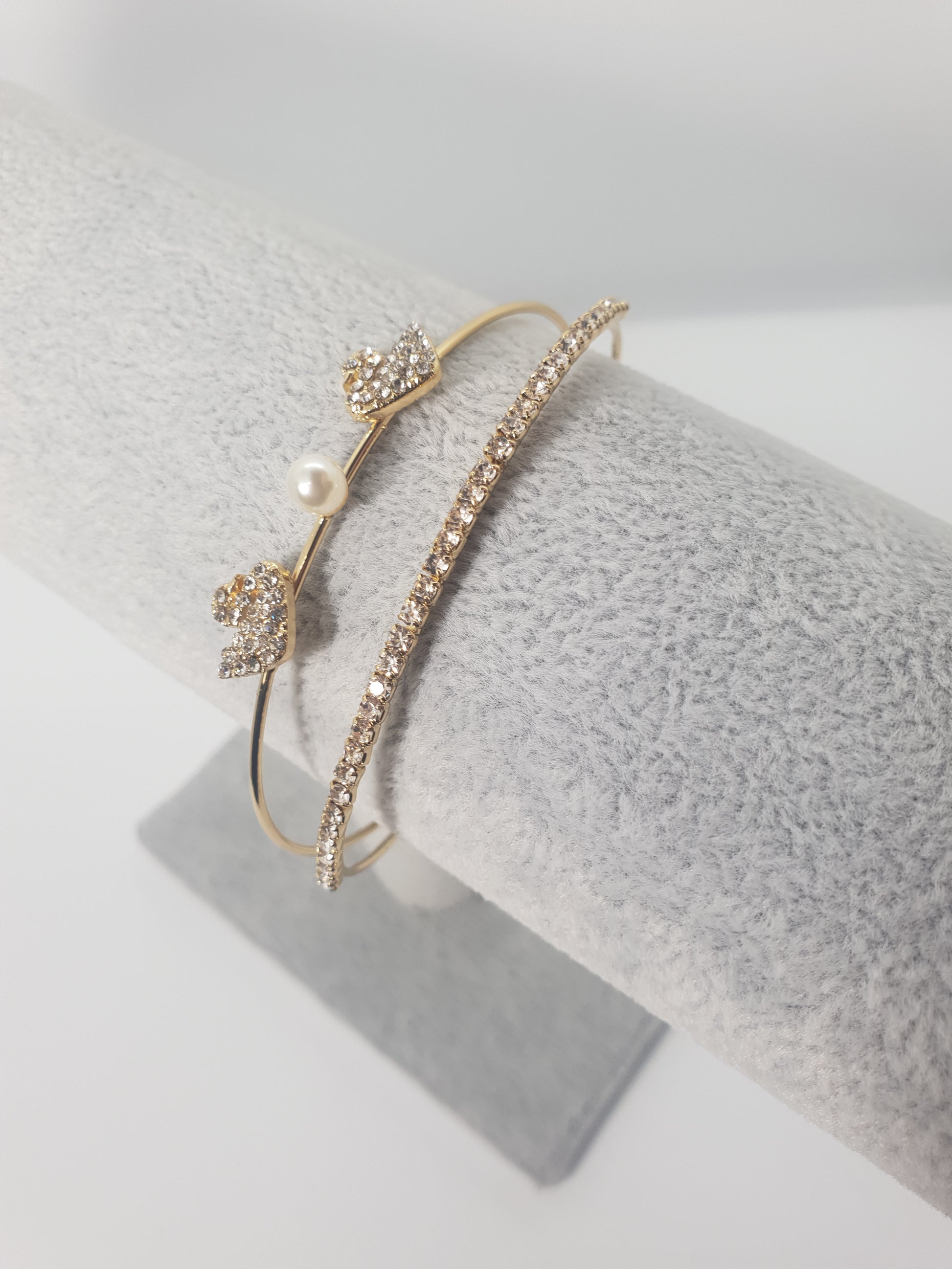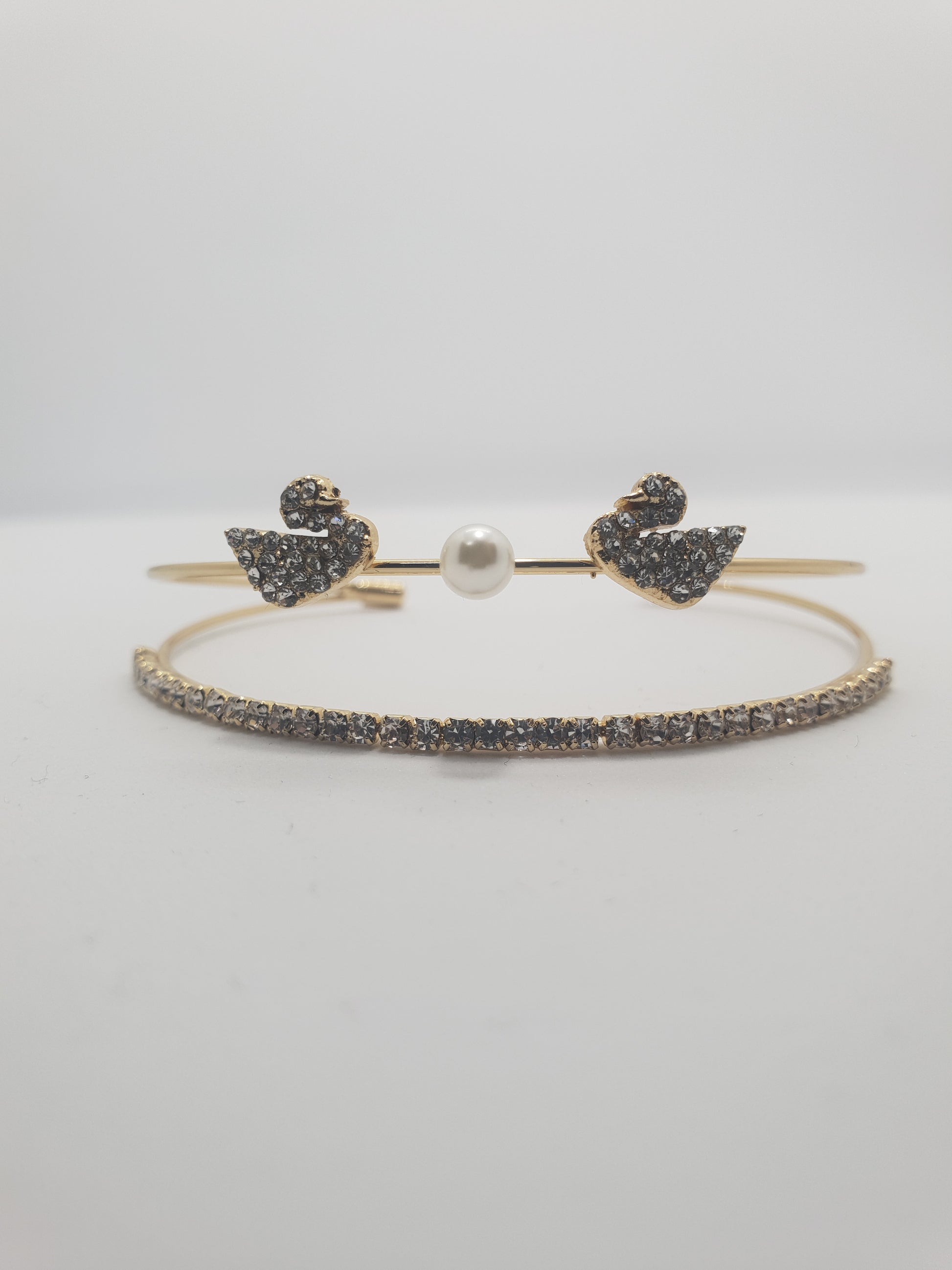 Al doilea cerc are o forma distinctiva, avand doua rate fata in fata si o perla in mijloc. Aceasta combinatie de elemente ii ofera bratarii un aspect sofisticat si stilat, perfect pentru orice tinuta eleganta.