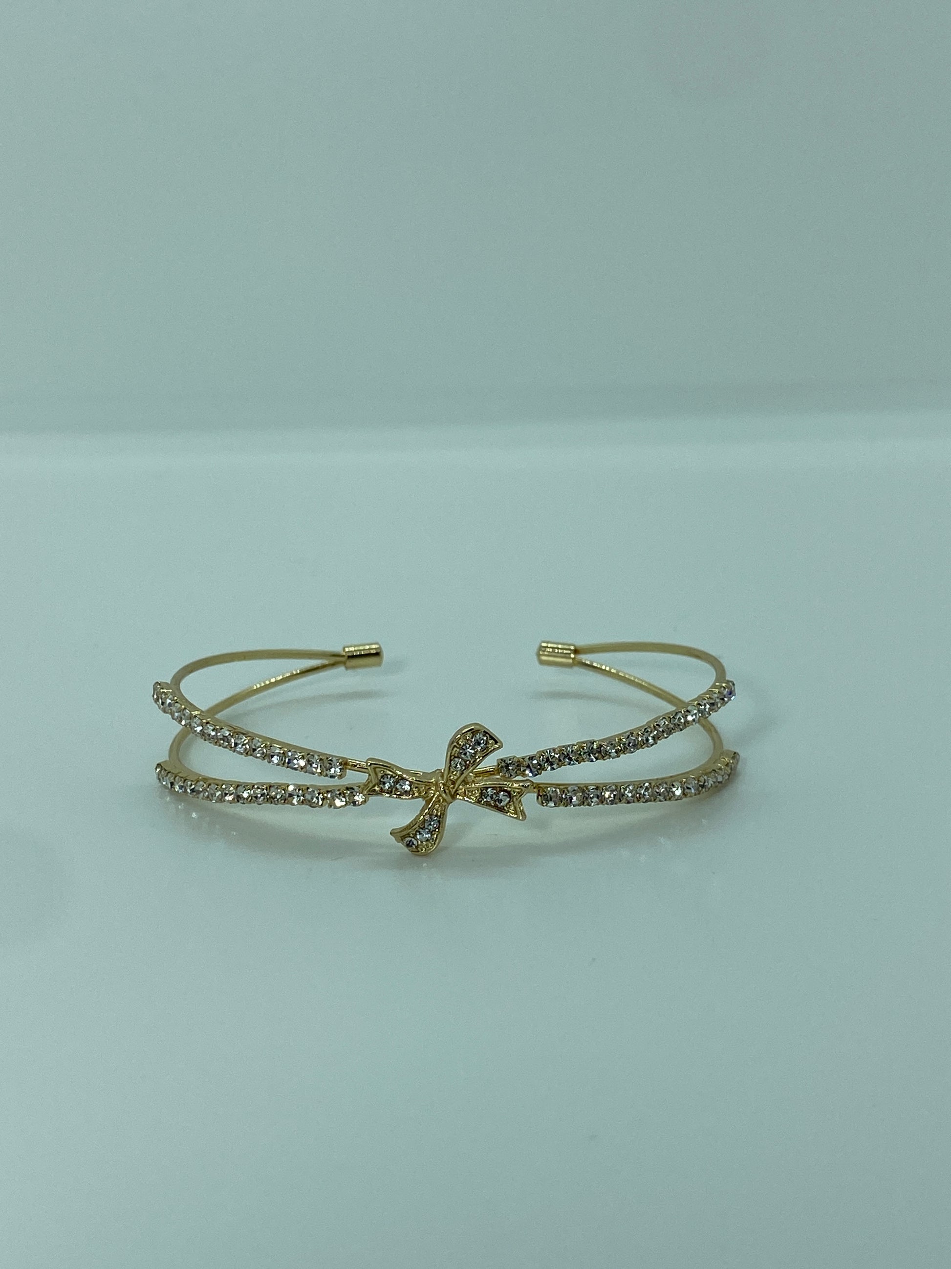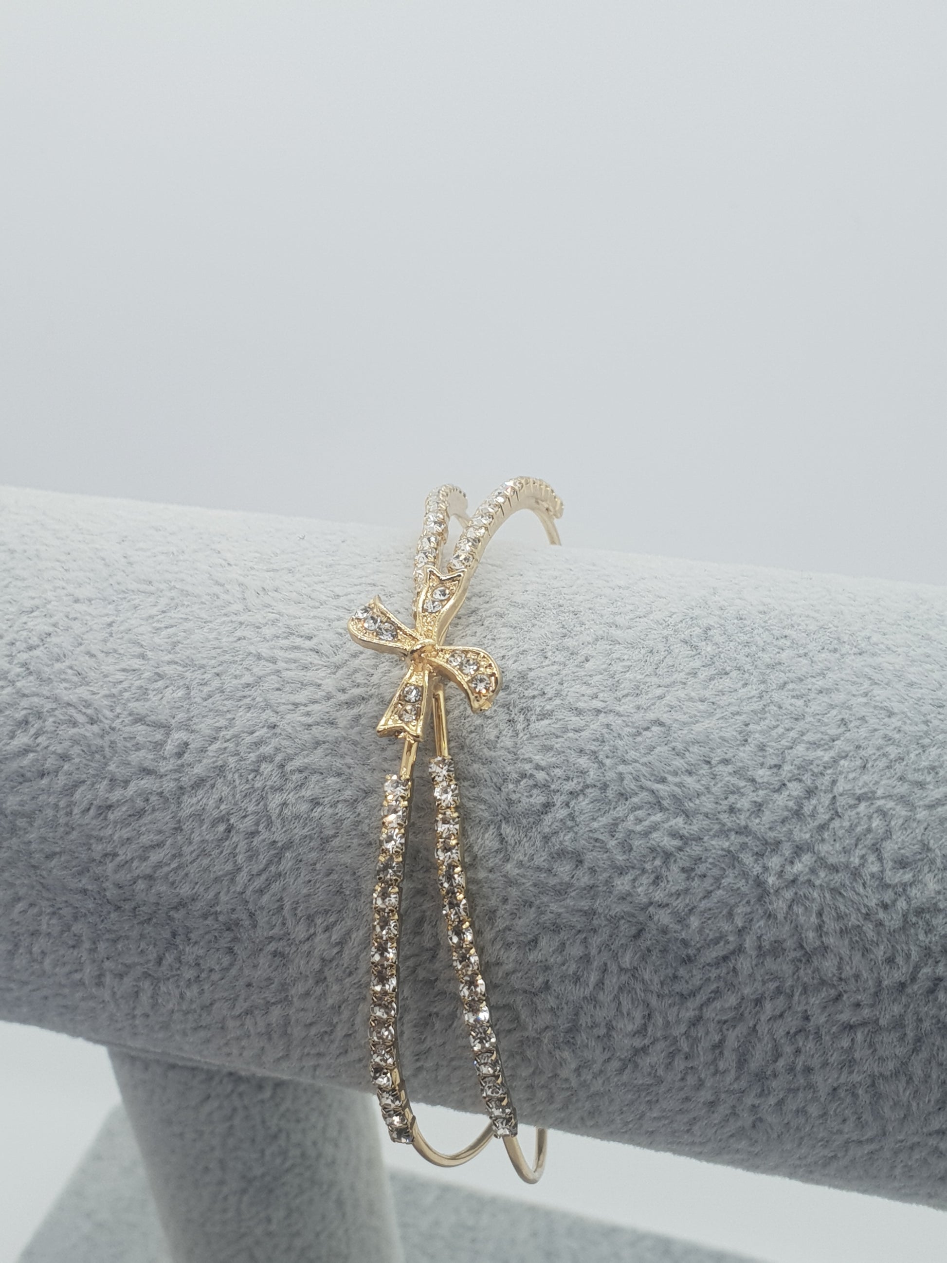 In mijlocul celor doua cercuri se afla un pandantiv in forma de funda din inox inoxidabil si cristale de zirconium, care confera bratarii un plus de feminitate si rafinament.