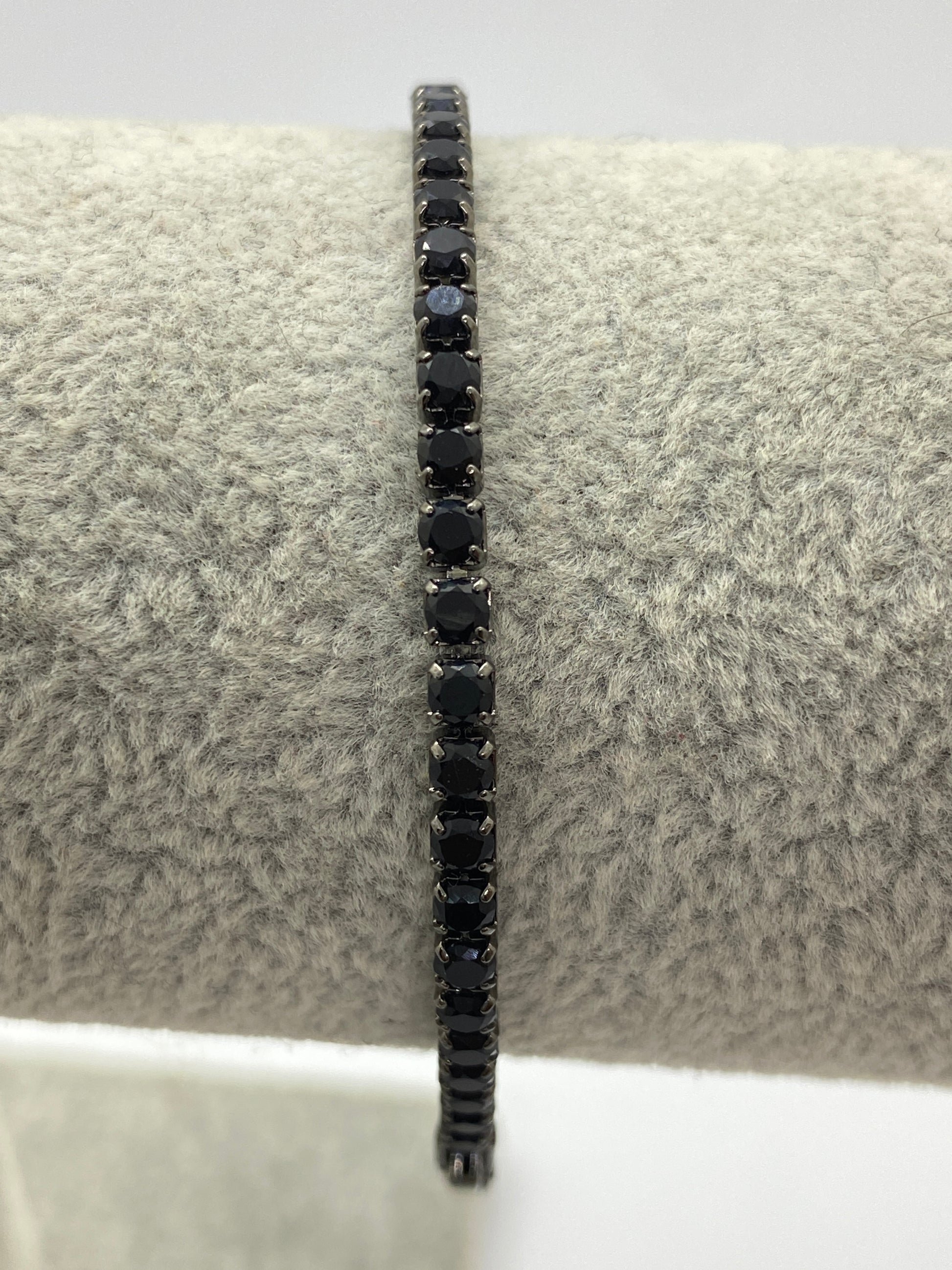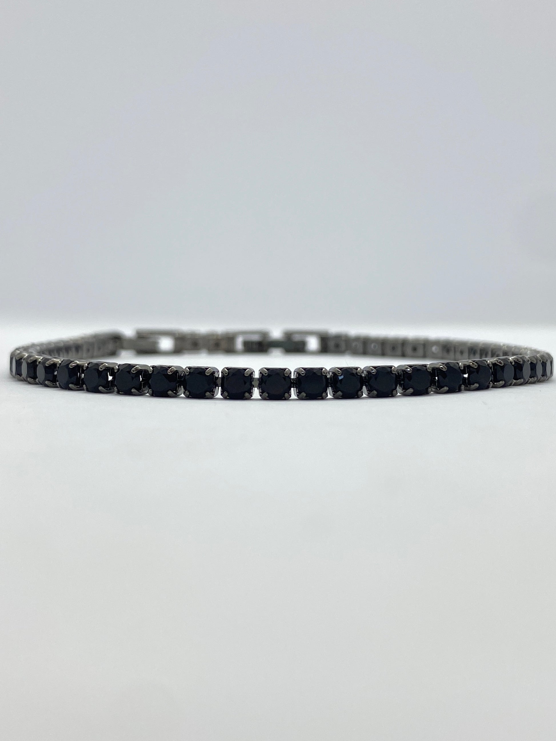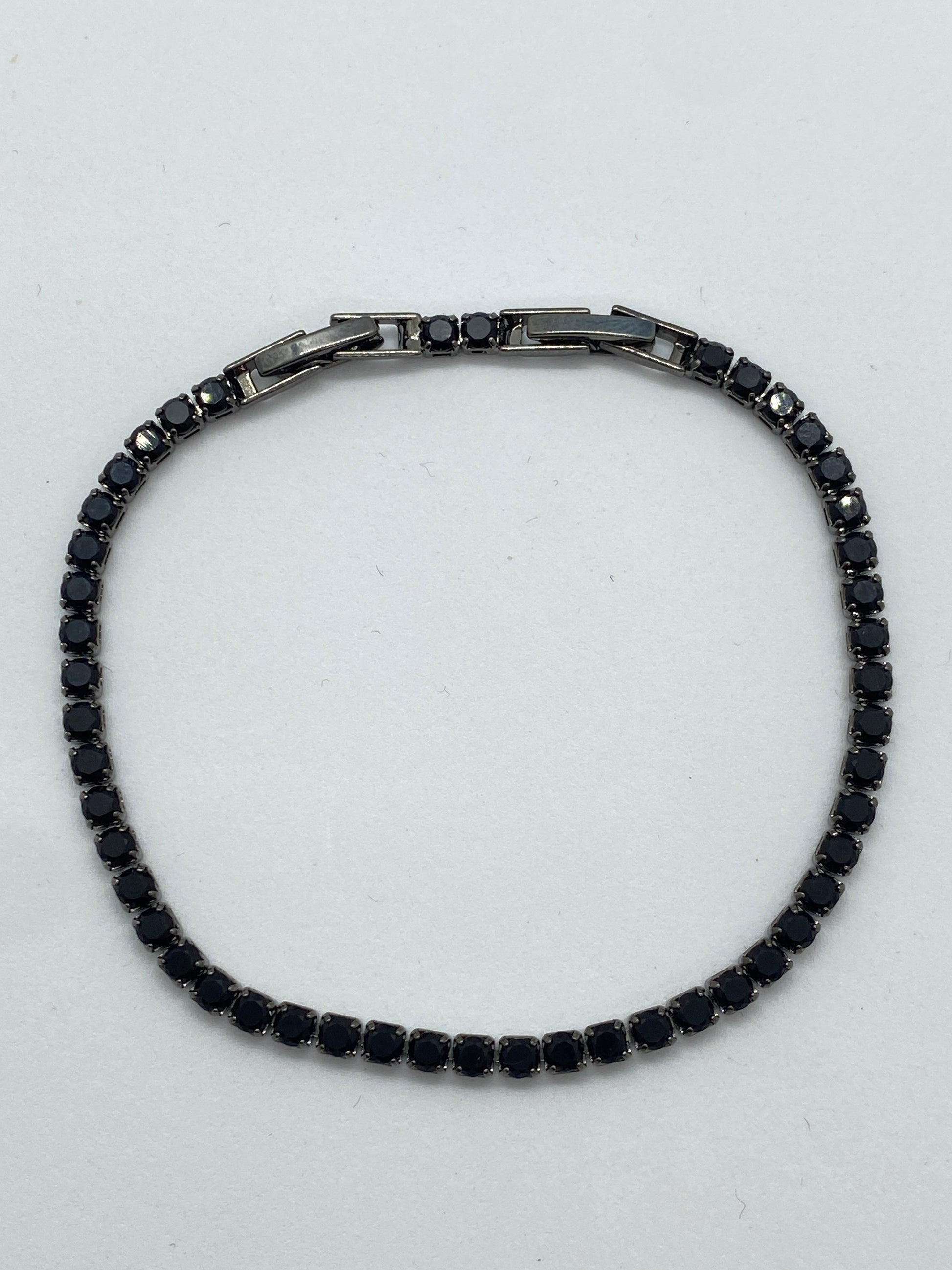 Încântă-ți încheietura cu brățara noastră Tennis Full Black, un simbol al eleganței întunecate. Fiecare piatră de zirconiu neagră strălucește în lumina subtilă, încadrată perfect de metalul negru
