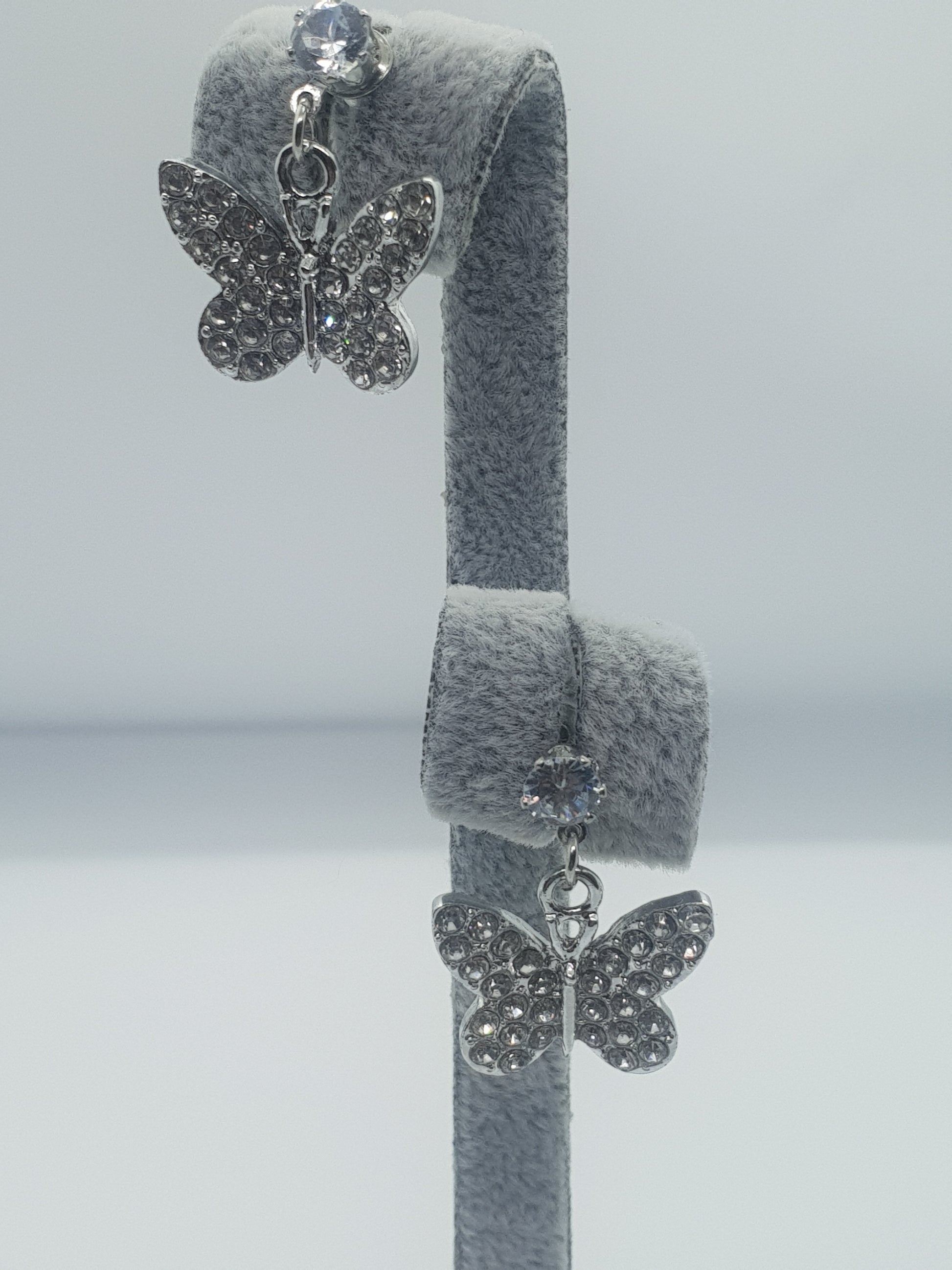 Acești cercei unici în formă de fluturași sunt confecționați din oțel inoxidabil de culoare argintie și sunt accesorizați cu cristale albe de zirconiu, care reflectă lumina în mod spectaculos. Fluturașii reprezintă libertatea și grația și sunt simbolul unei transformări impresionante. Acești cercei vor adăuga o notă de eleganță și rafinament ținutei tale.
