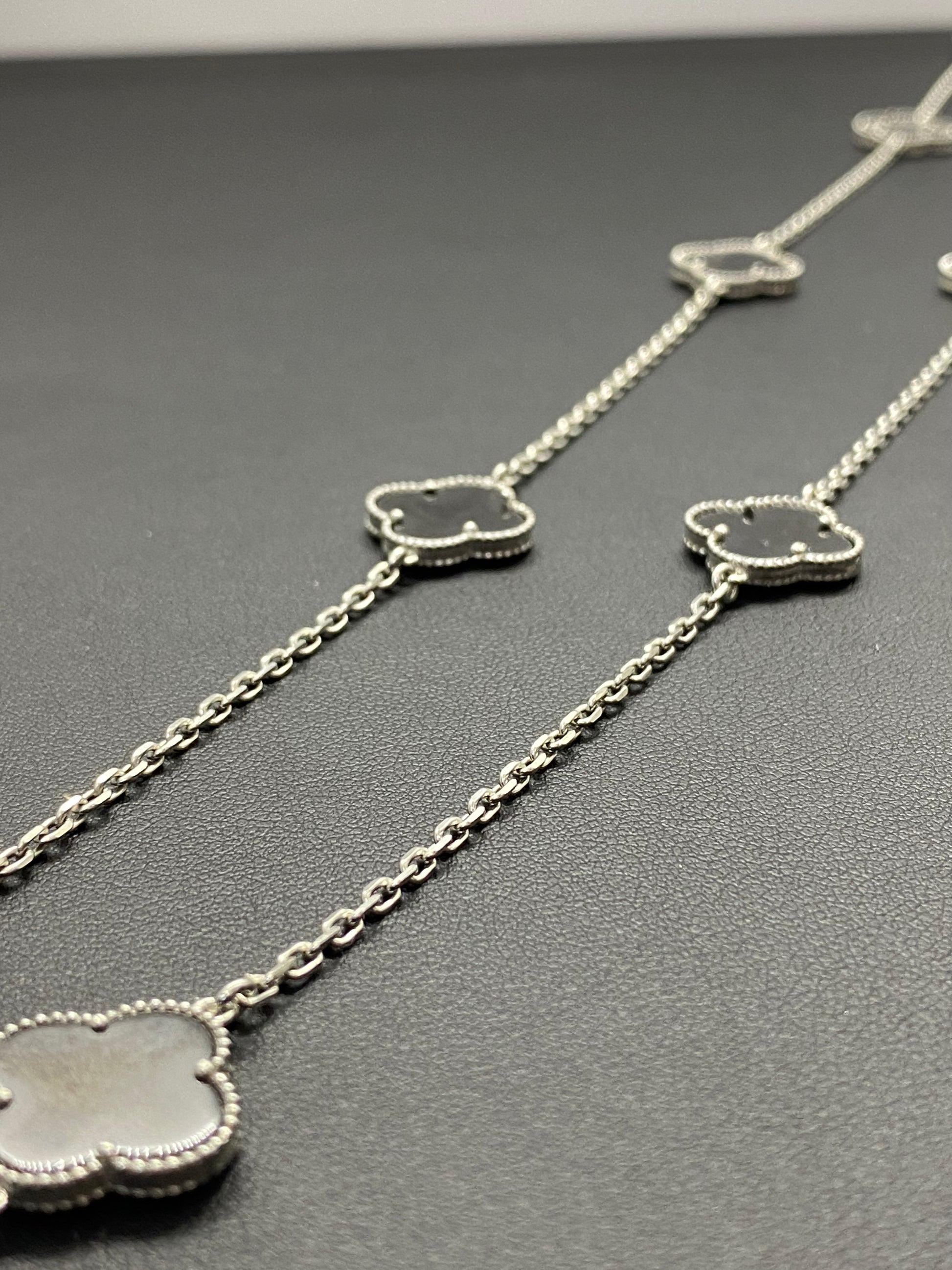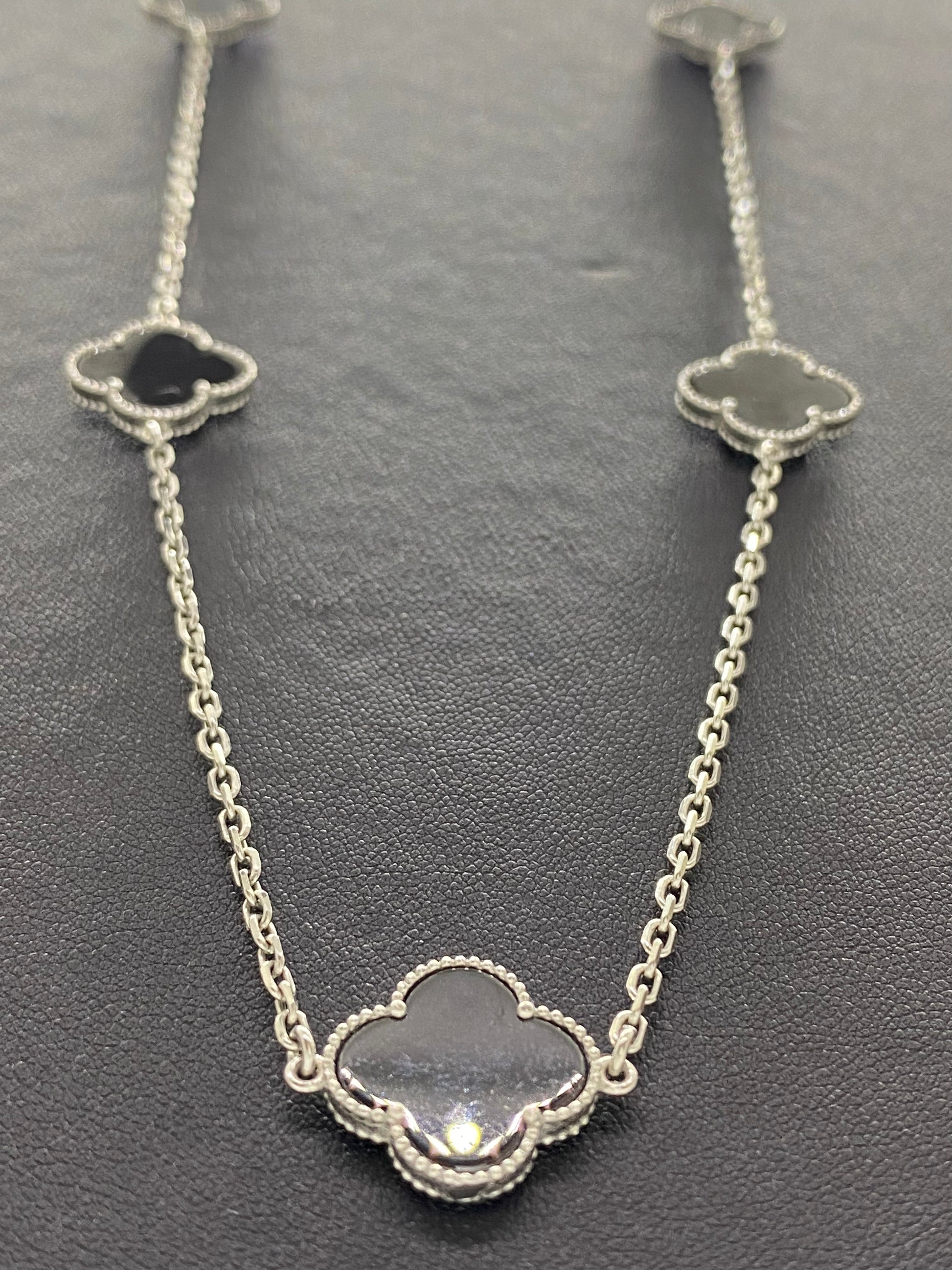 Poartă norocul cu tine în fiecare zi cu acest colier delicat și elegant din argint, decorat cu simboluri clasice în formă de trifoi cu patru foi. Cu o lungime generoasă de 85 cm (ajustabil până la 95 cm), acest colier este perfect pentru un look sofisticat, fie purtat simplu, fie în combinație cu alte bijuterii. Designul său inspirat de stilul atemporal adaugă o notă subtilă de rafinament și pozitivitate oricărei ținute.