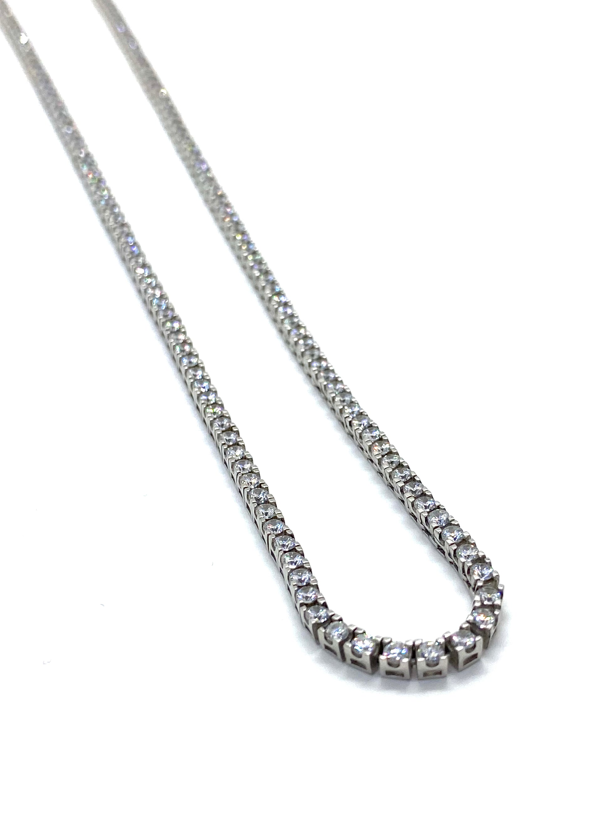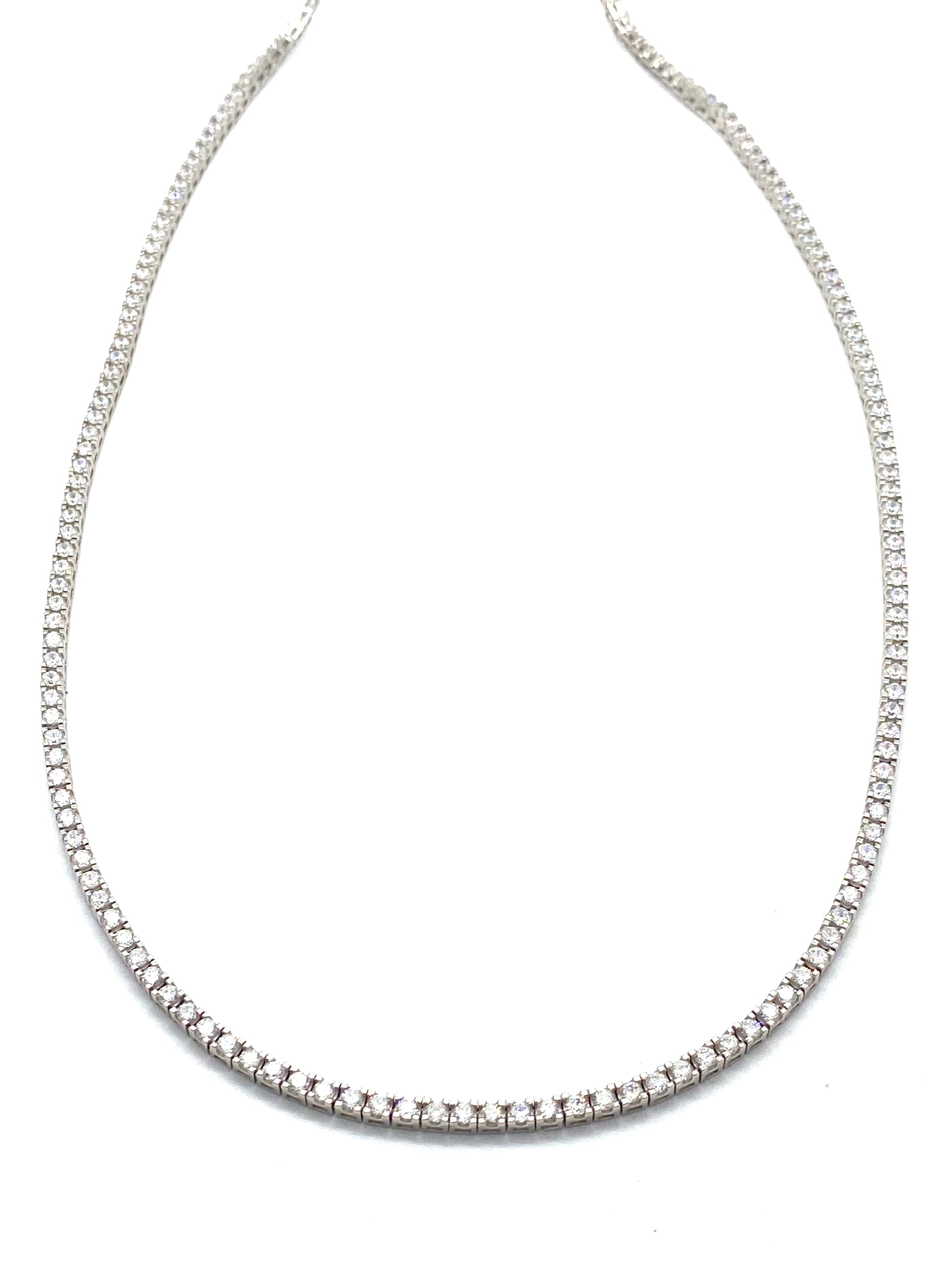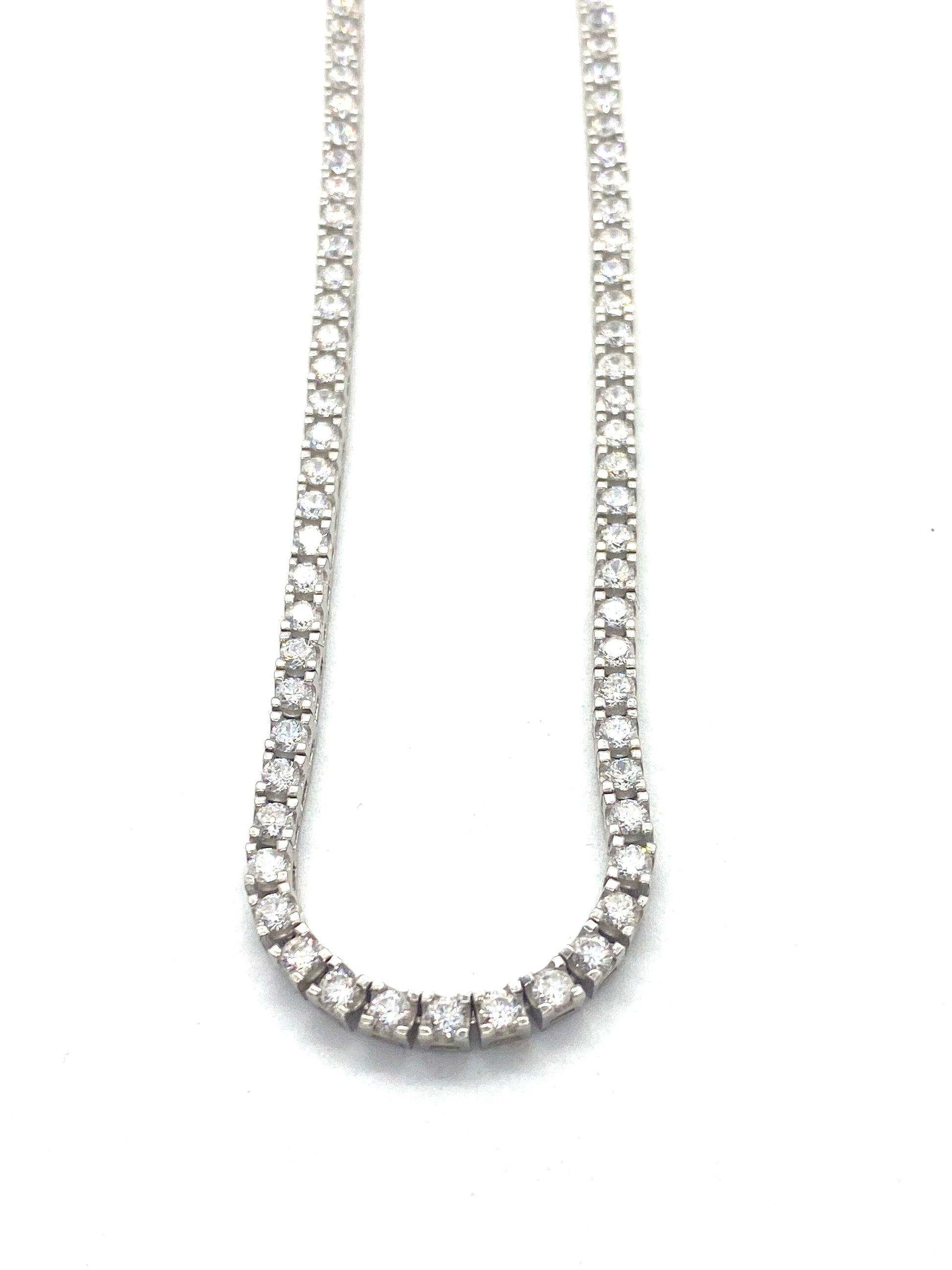 Un clasic redefinit în detalii strălucitoare. Realizat din argint 925 rodiat pentru un luciu de durată și împodobit cu zirconii perfect tăiate de 3 mm, acest colier adaugă o notă de lux oricărei ținute. Disponibil în mai multe lungimi pentru a se potrivi stilului tău – fie că preferi un look minimalist sau o suprapunere sofisticată. Poartă-l simplu sau personalizează-l cu pandantivul tău preferat.