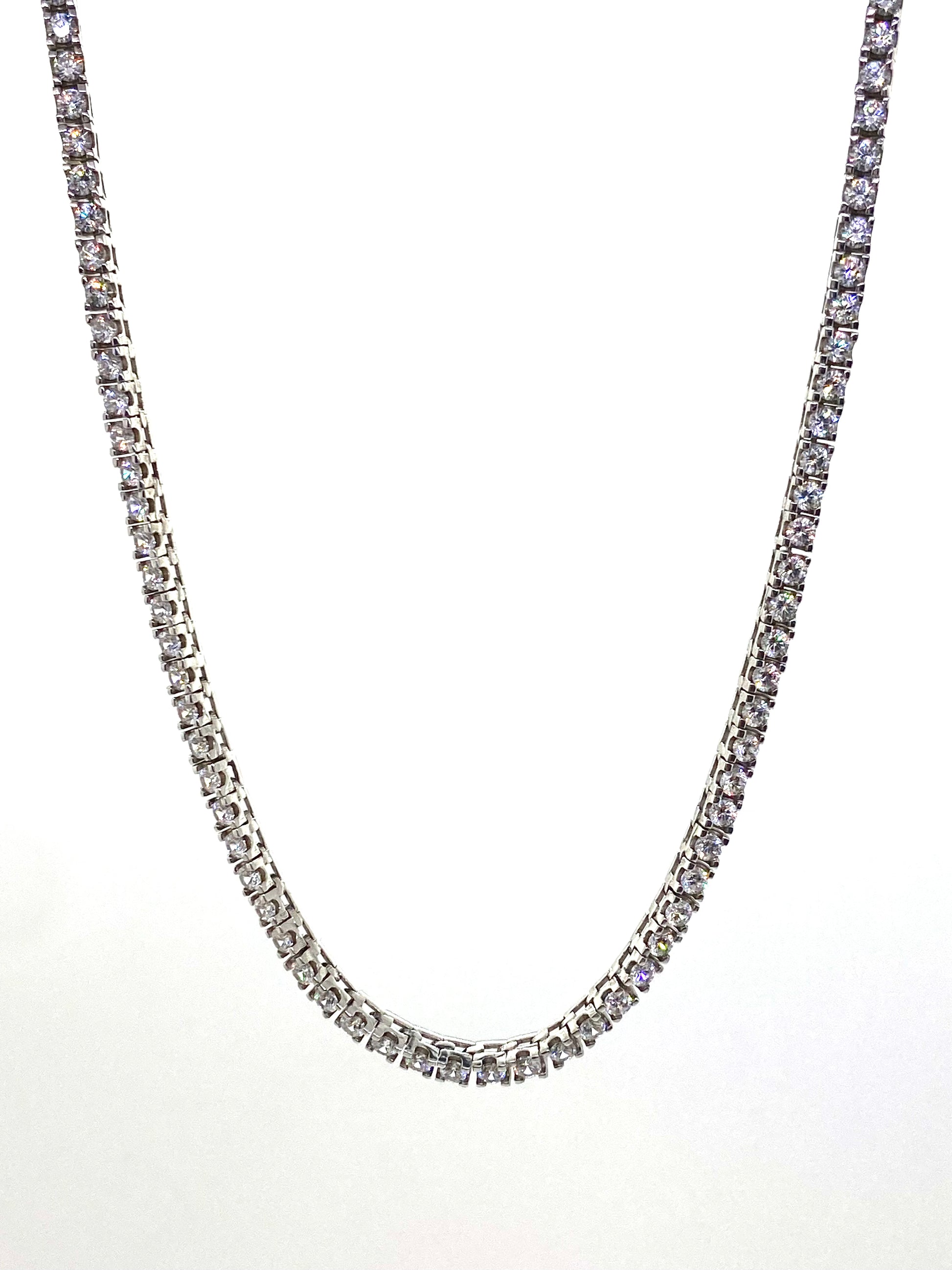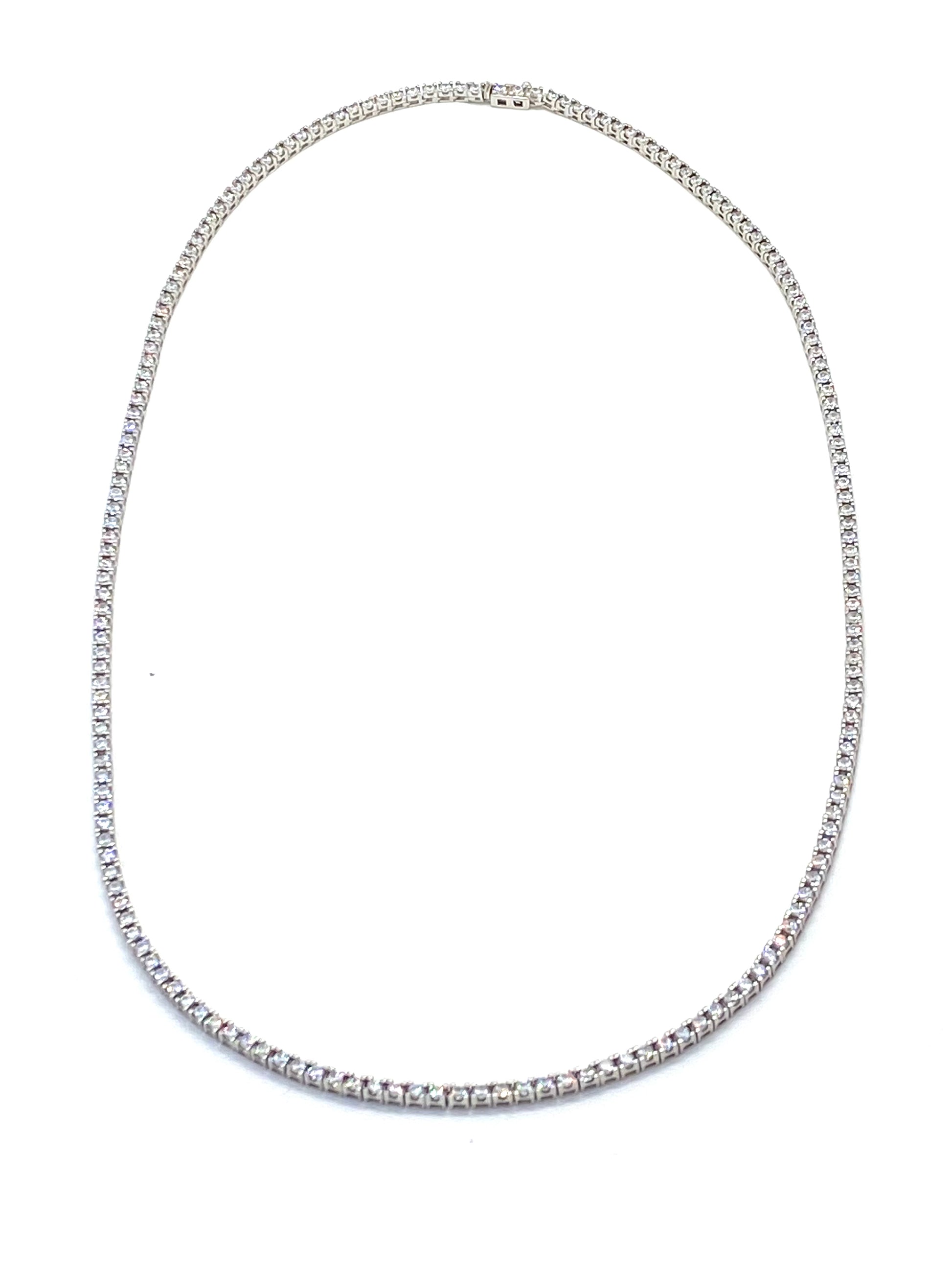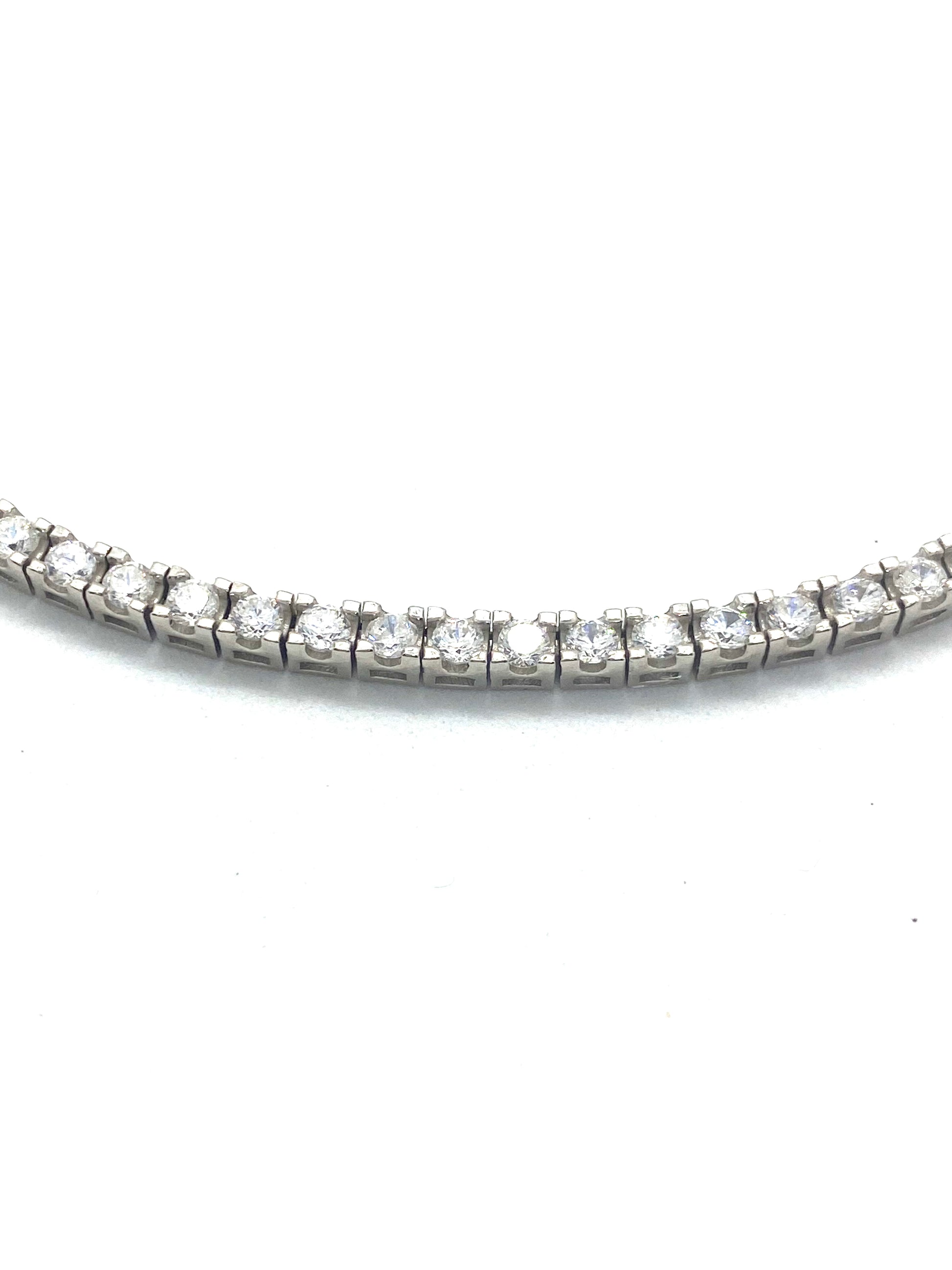 Un clasic redefinit în detalii strălucitoare. Realizat din argint 925 rodiat pentru un luciu de durată și împodobit cu zirconii perfect tăiate de 3 mm, acest colier adaugă o notă de lux oricărei ținute. Disponibil în mai multe lungimi pentru a se potrivi stilului tău – fie că preferi un look minimalist sau o suprapunere sofisticată. Poartă-l simplu sau personalizează-l cu pandantivul tău preferat.