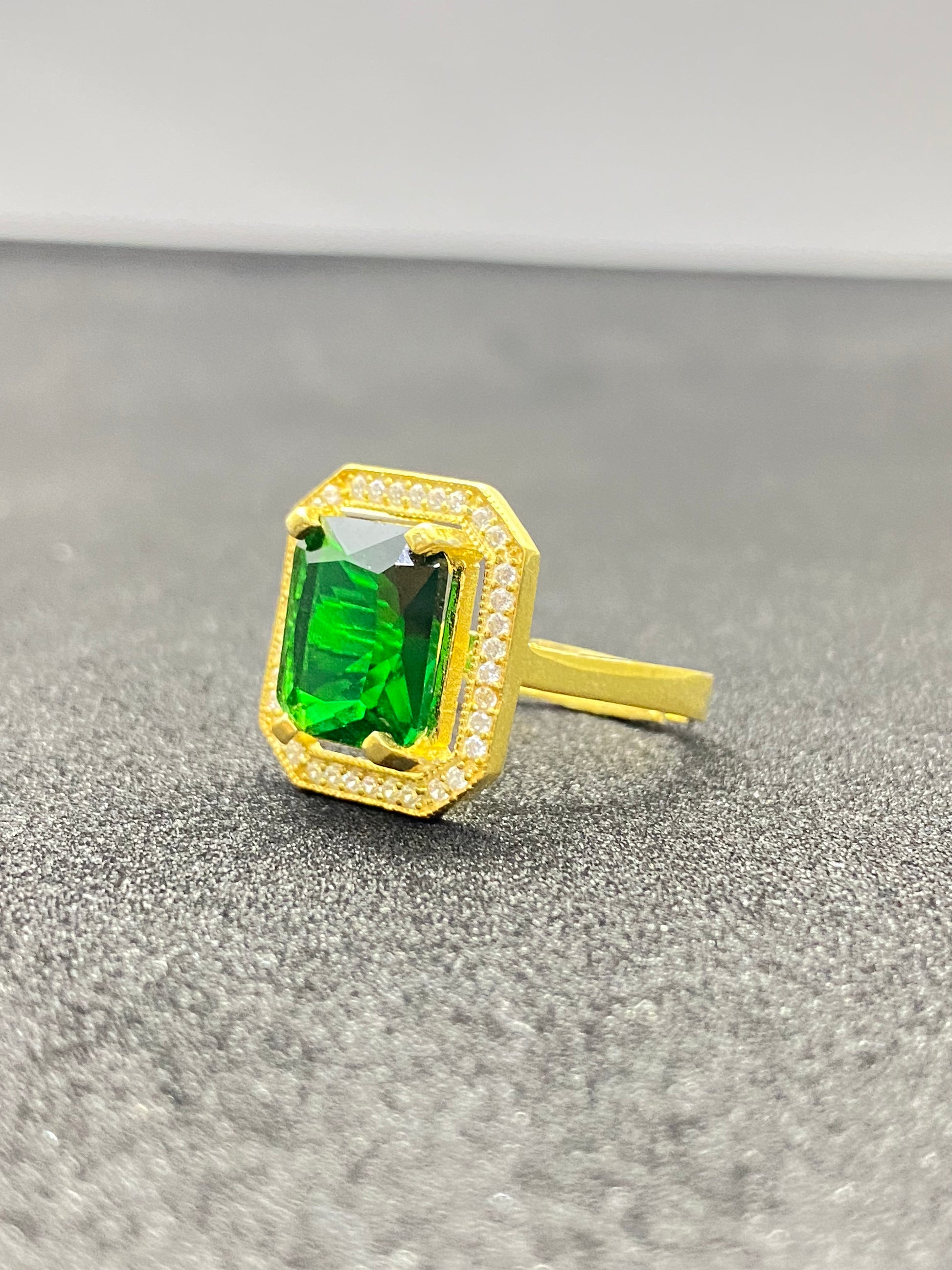 Inel Emerald Argint 925 Aurit cu Piatră Verde