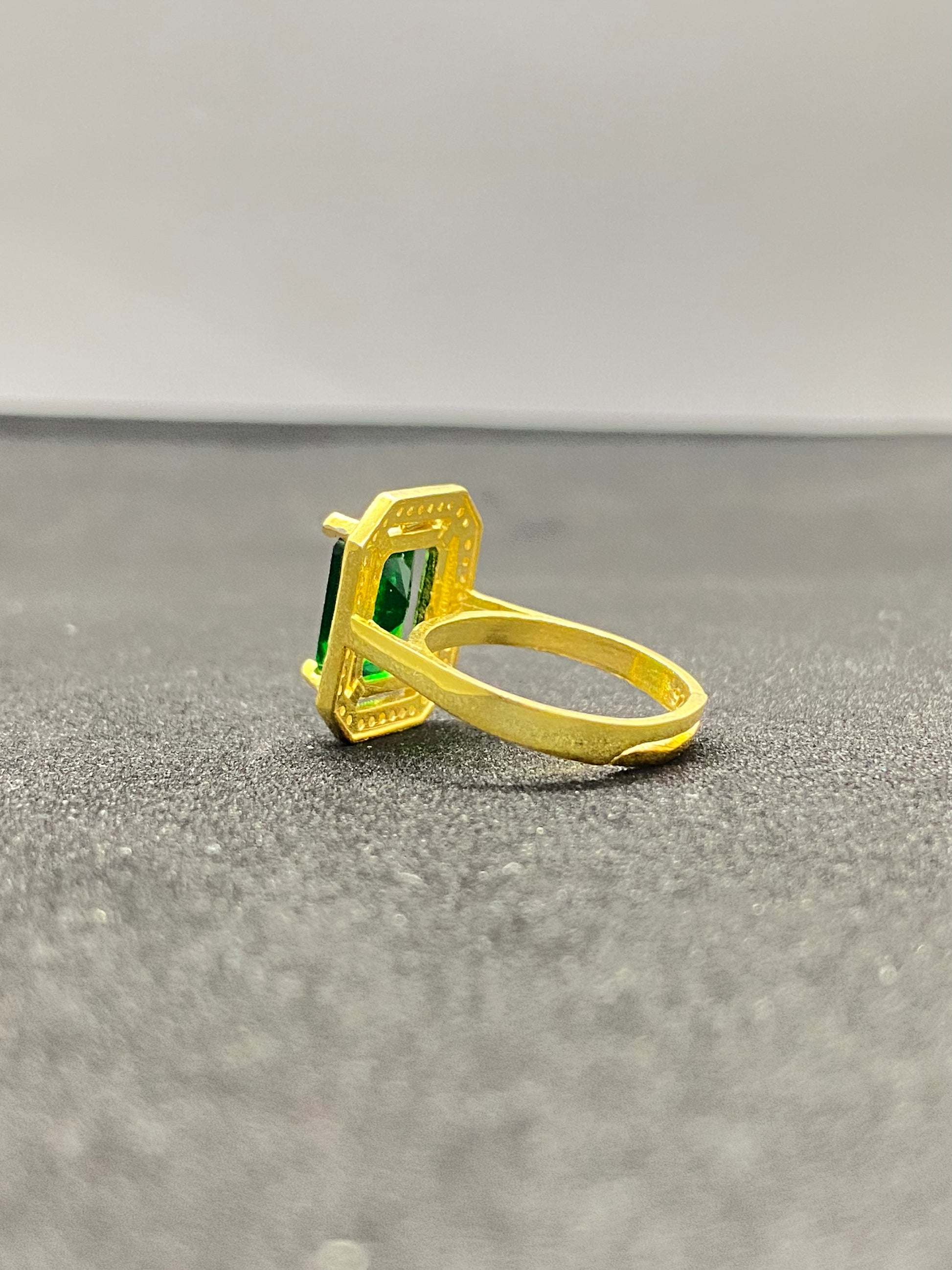 Strălucește cu rafinament purtând inelul Emerald , lucrat din argint 925 placat cu aur și împodobit cu o piatră centrală verde smarald. Designul elegant, cu accente clasice, transformă această bijuterie într-o alegere ideală pentru ocazii speciale sau cadouri prețioase.