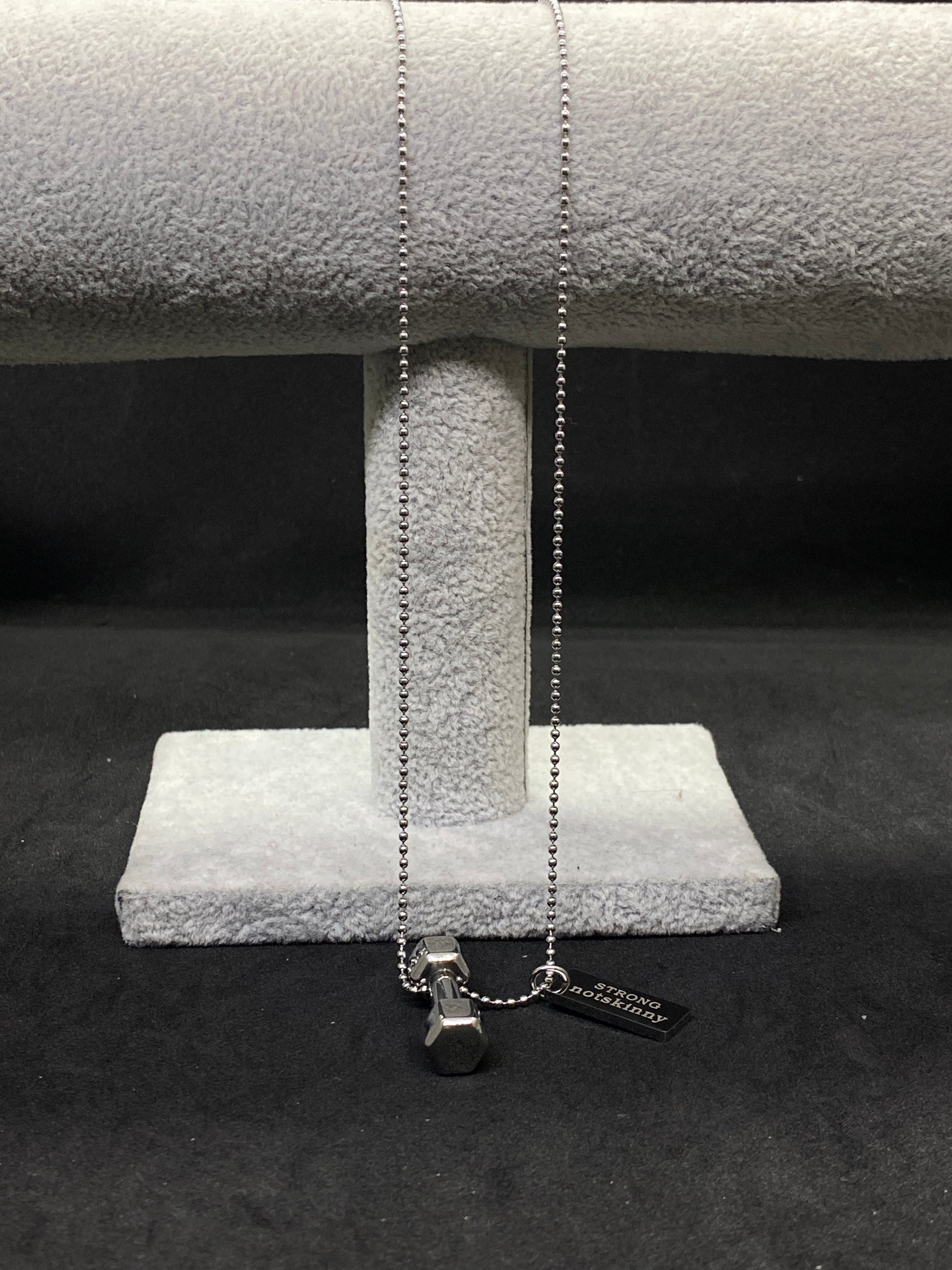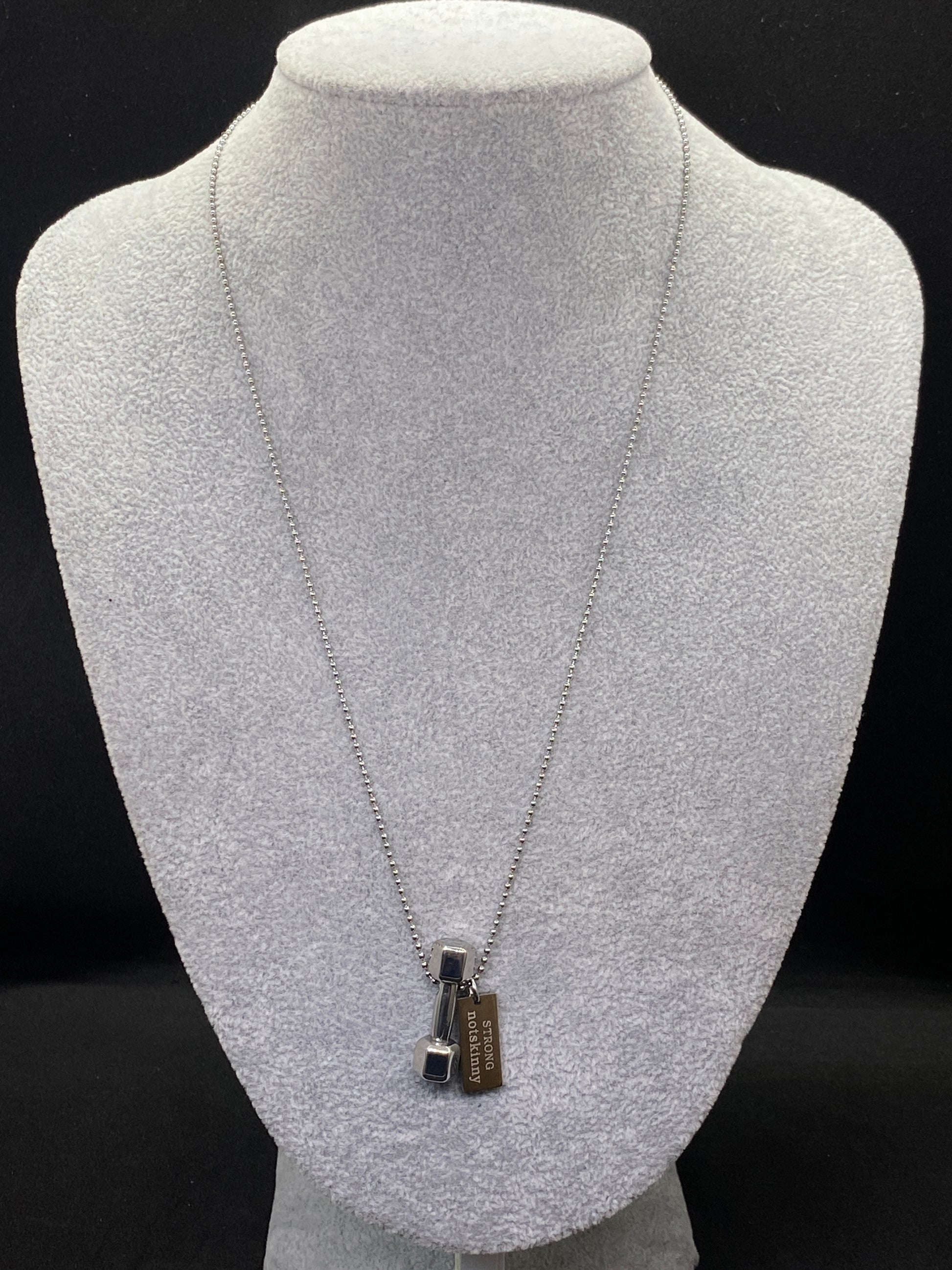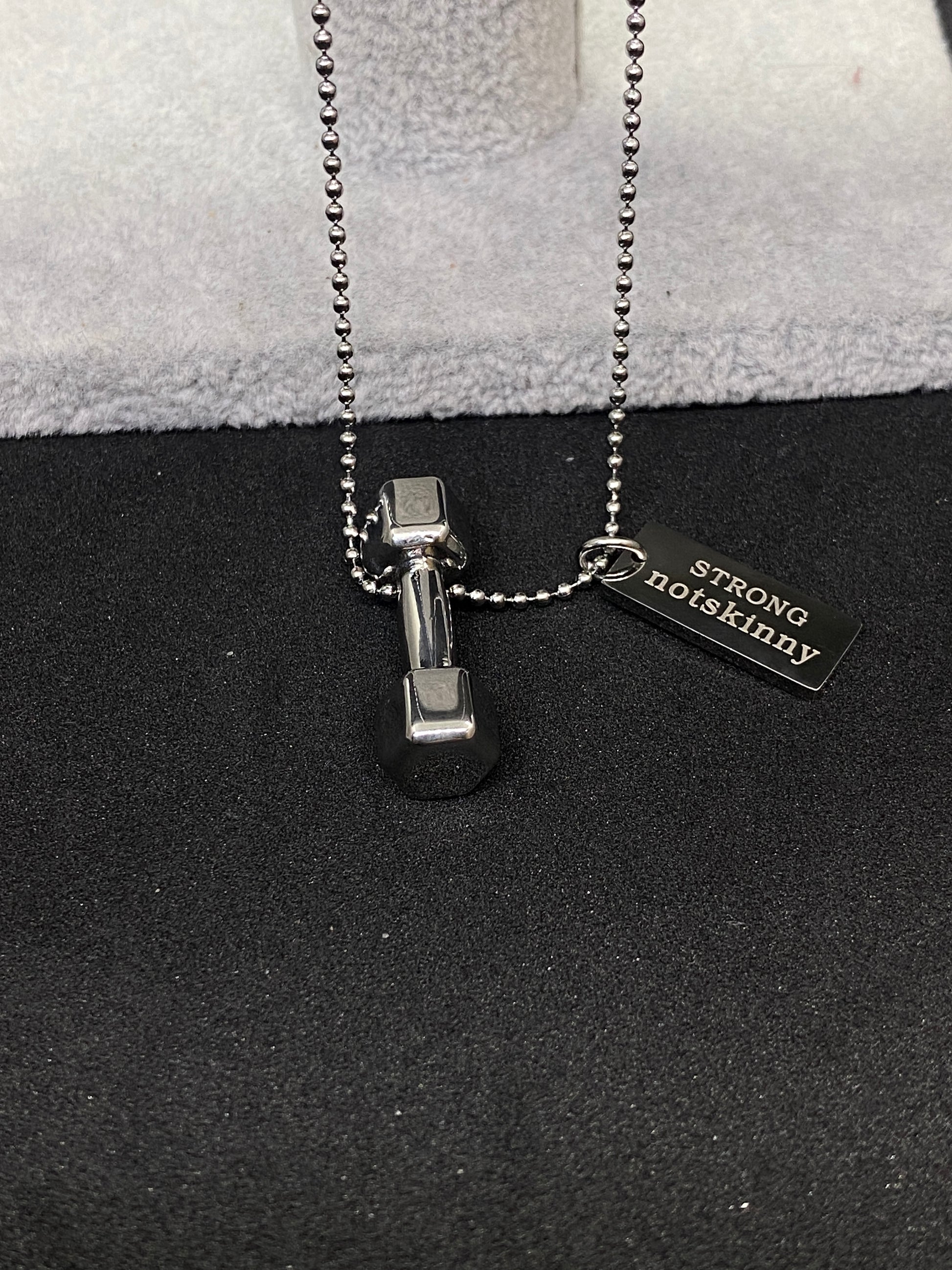 Îmbrățișează mesajul "Strong Not Skinny" cu lanțul dedicat. Cu un pandantiv în formă de ganteră și o tablă gravată, acest accesoriu devine o sursă constantă de inspirație