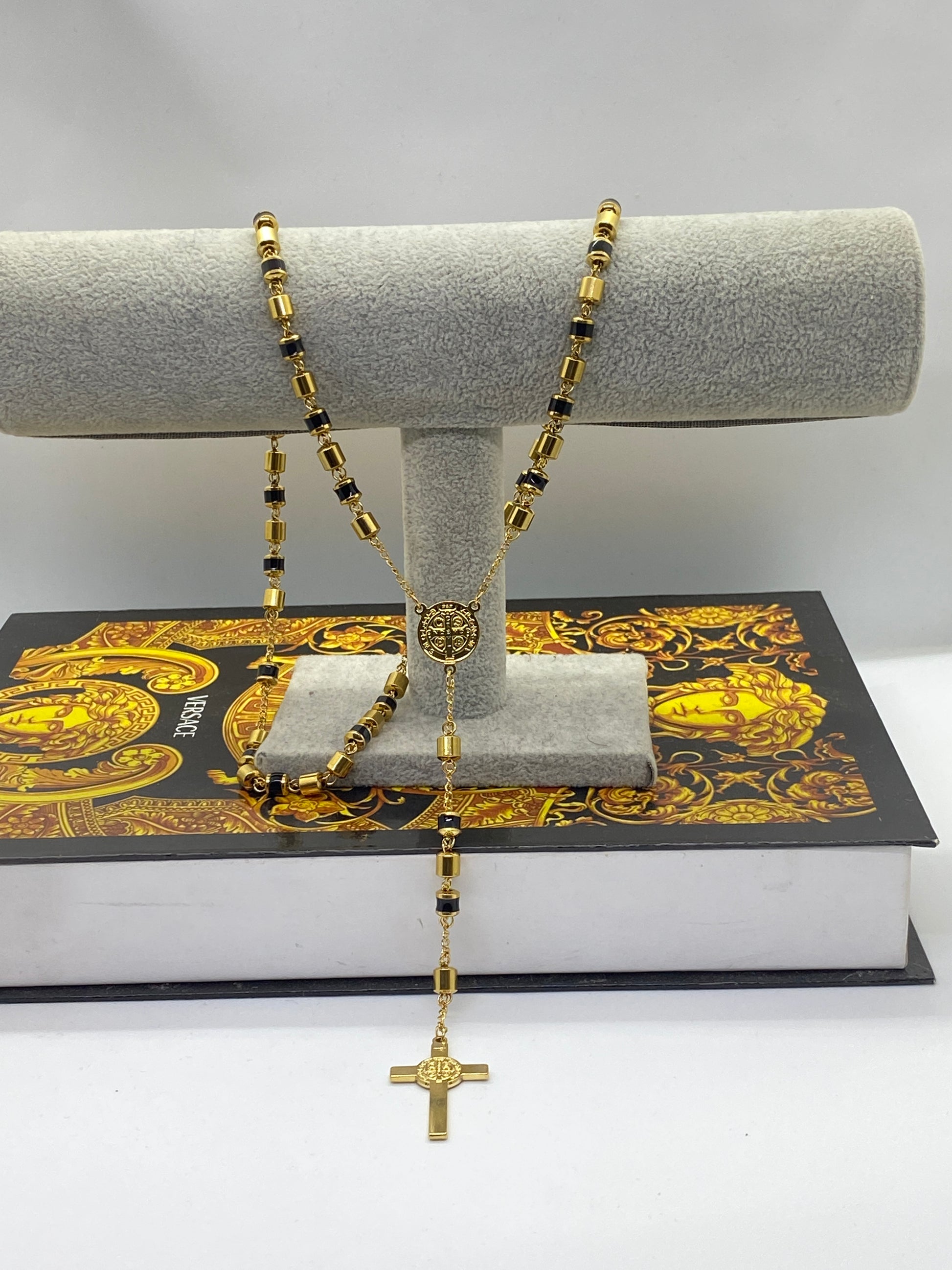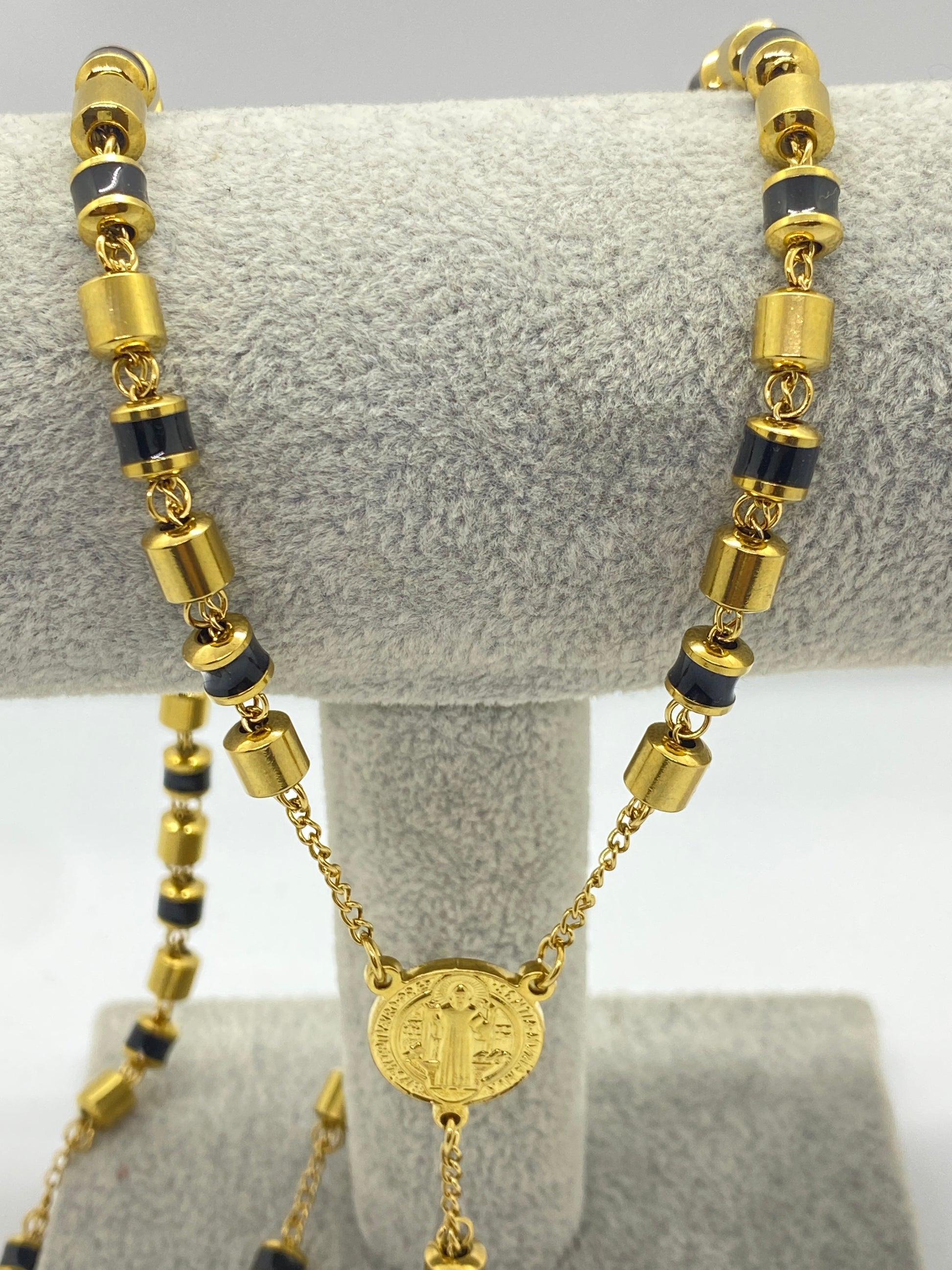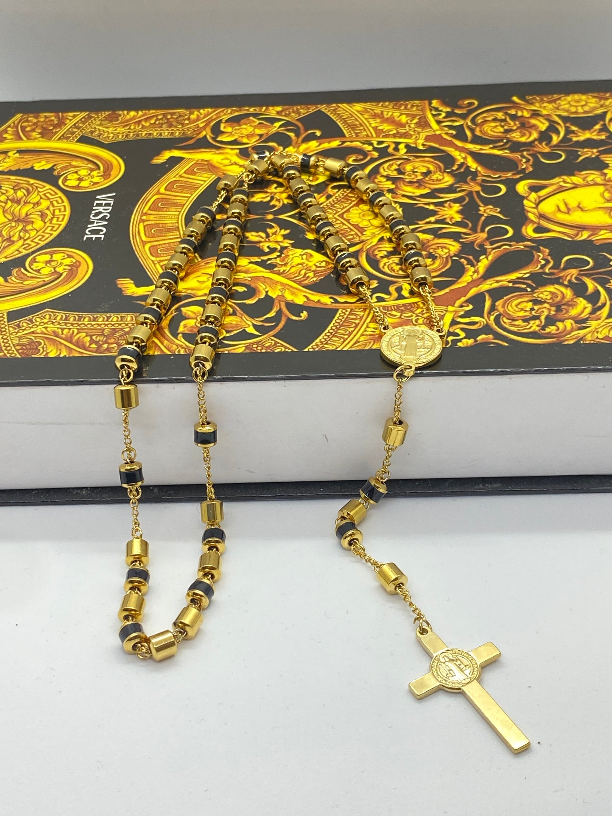 Descoperă frumusețea autentică a acestui lant tip rozariu aur-negru, confecționat din oțel inoxidabil. O bijuterie care nu se innegrește și rezistă la apă.