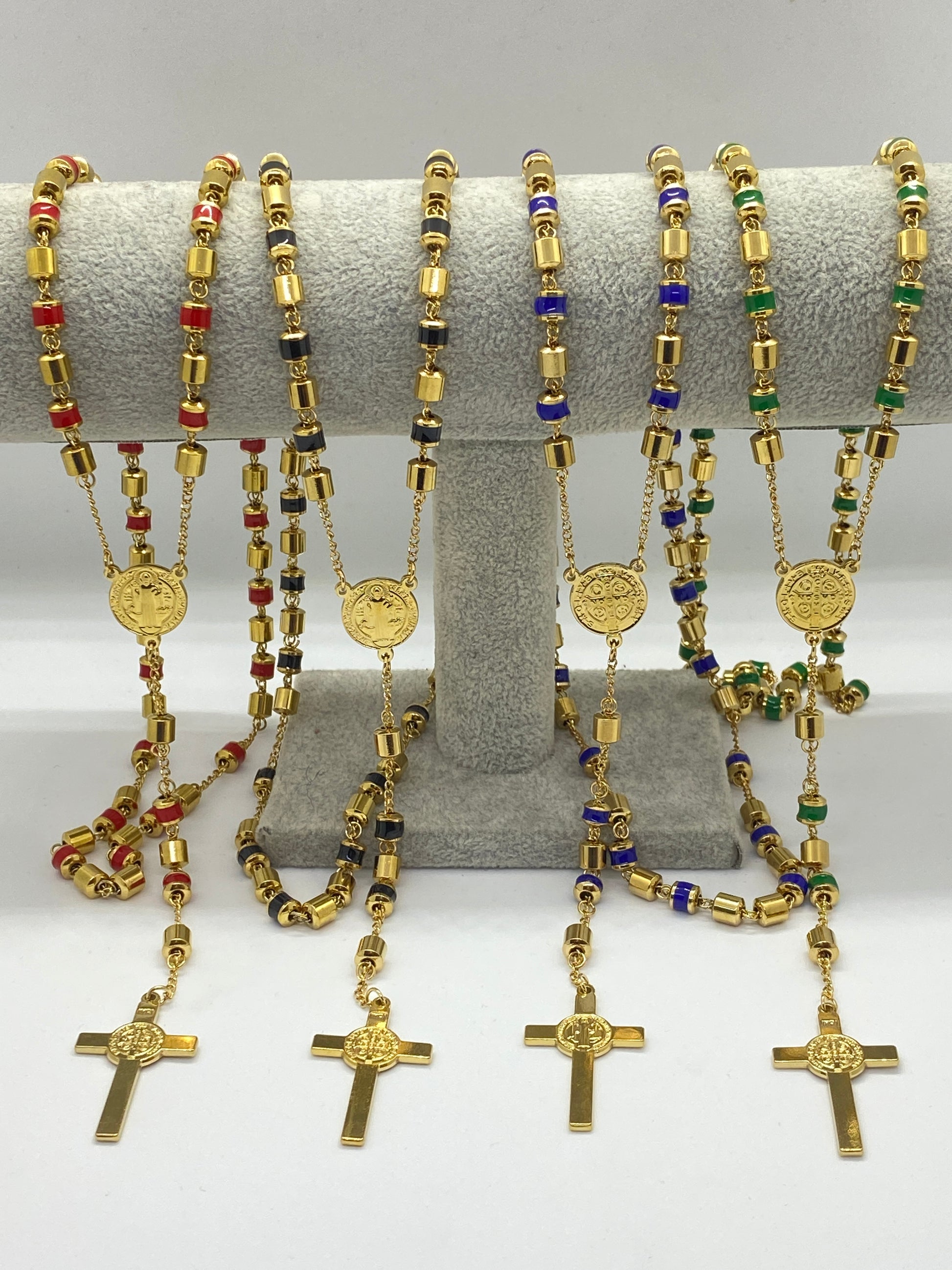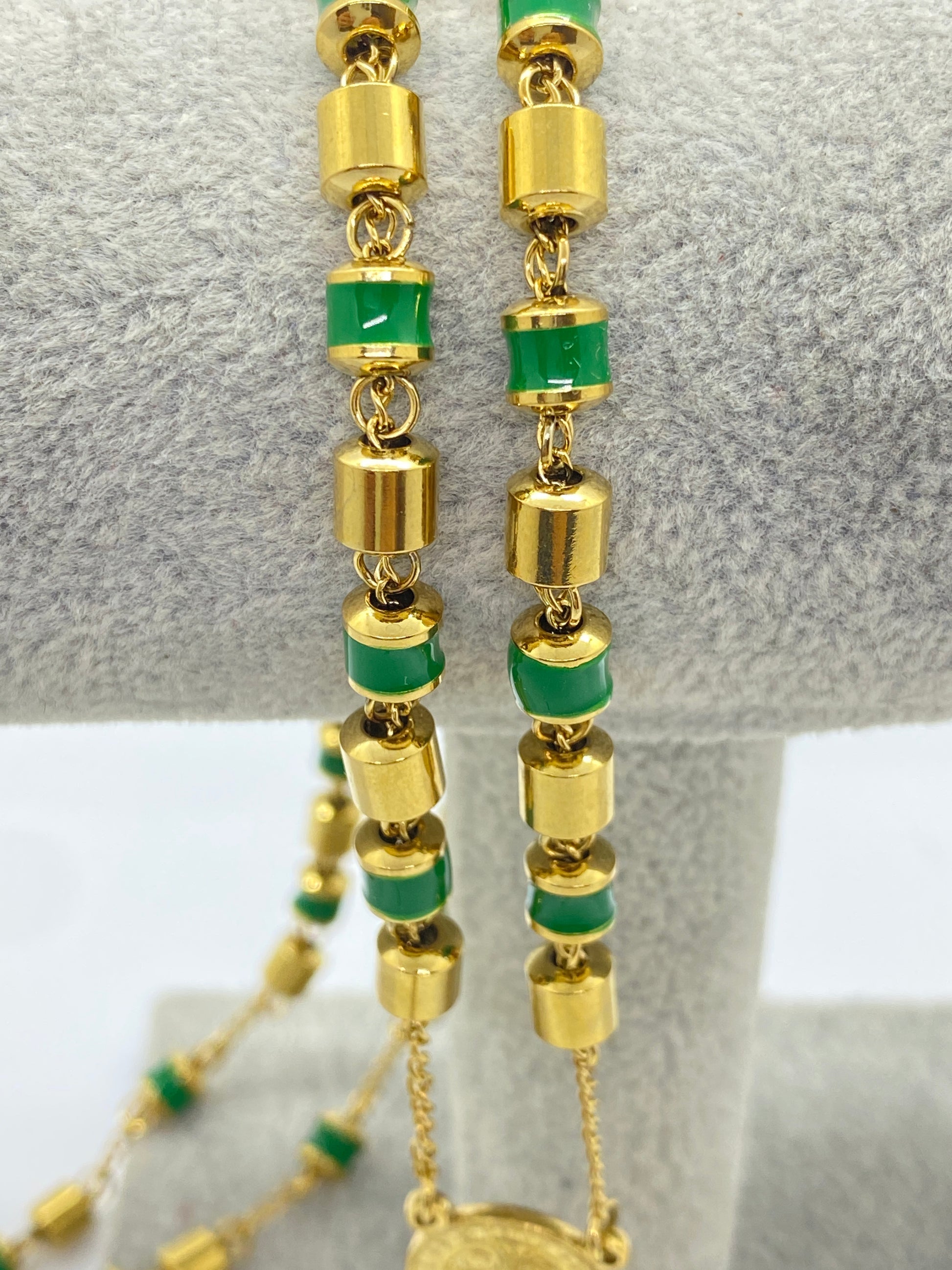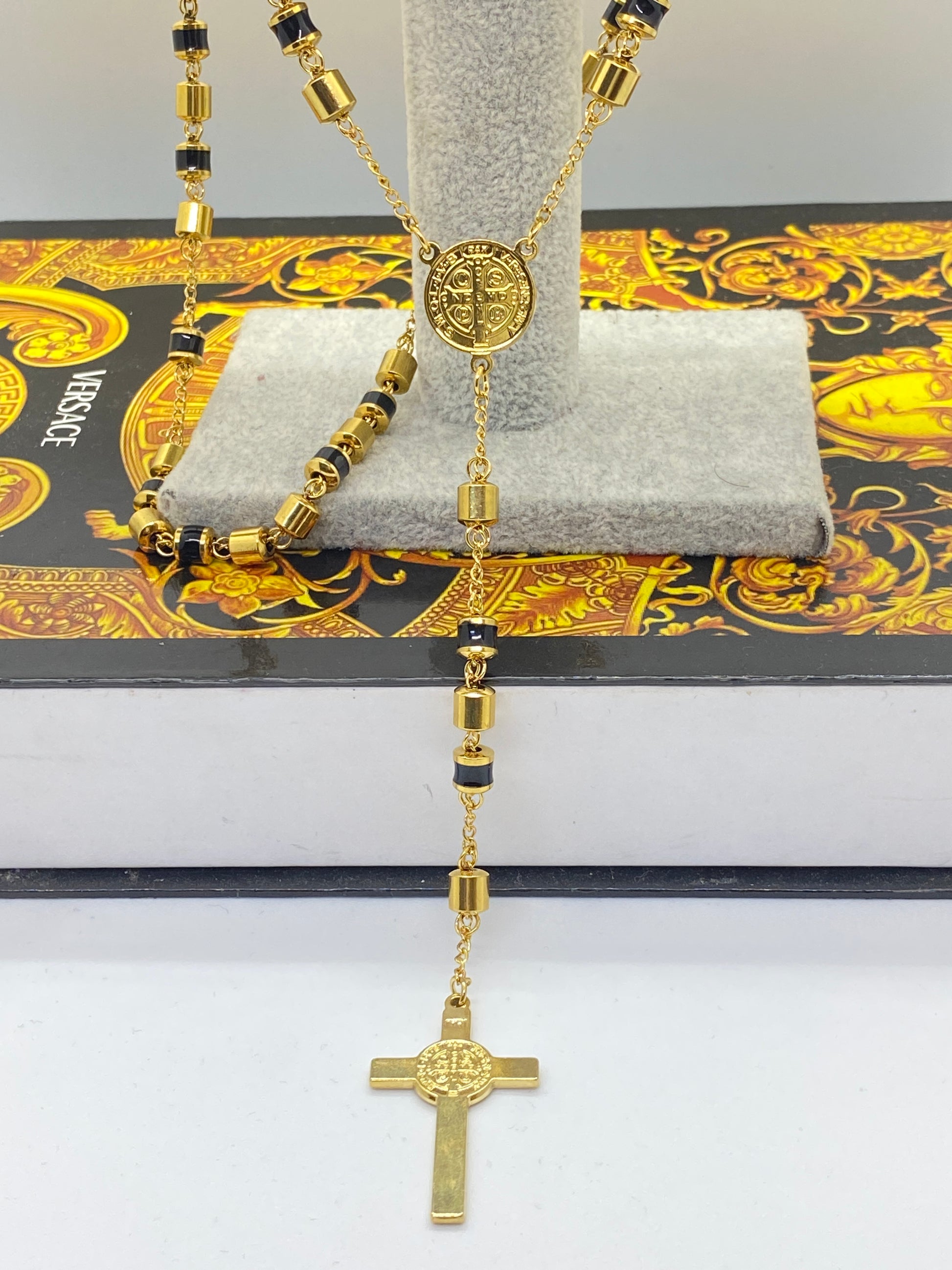 Descoperă frumusețea autentică a acestui lant tip rozariu aur-negru, confecționat din oțel inoxidabil. O bijuterie care nu se innegrește și rezistă la apă.