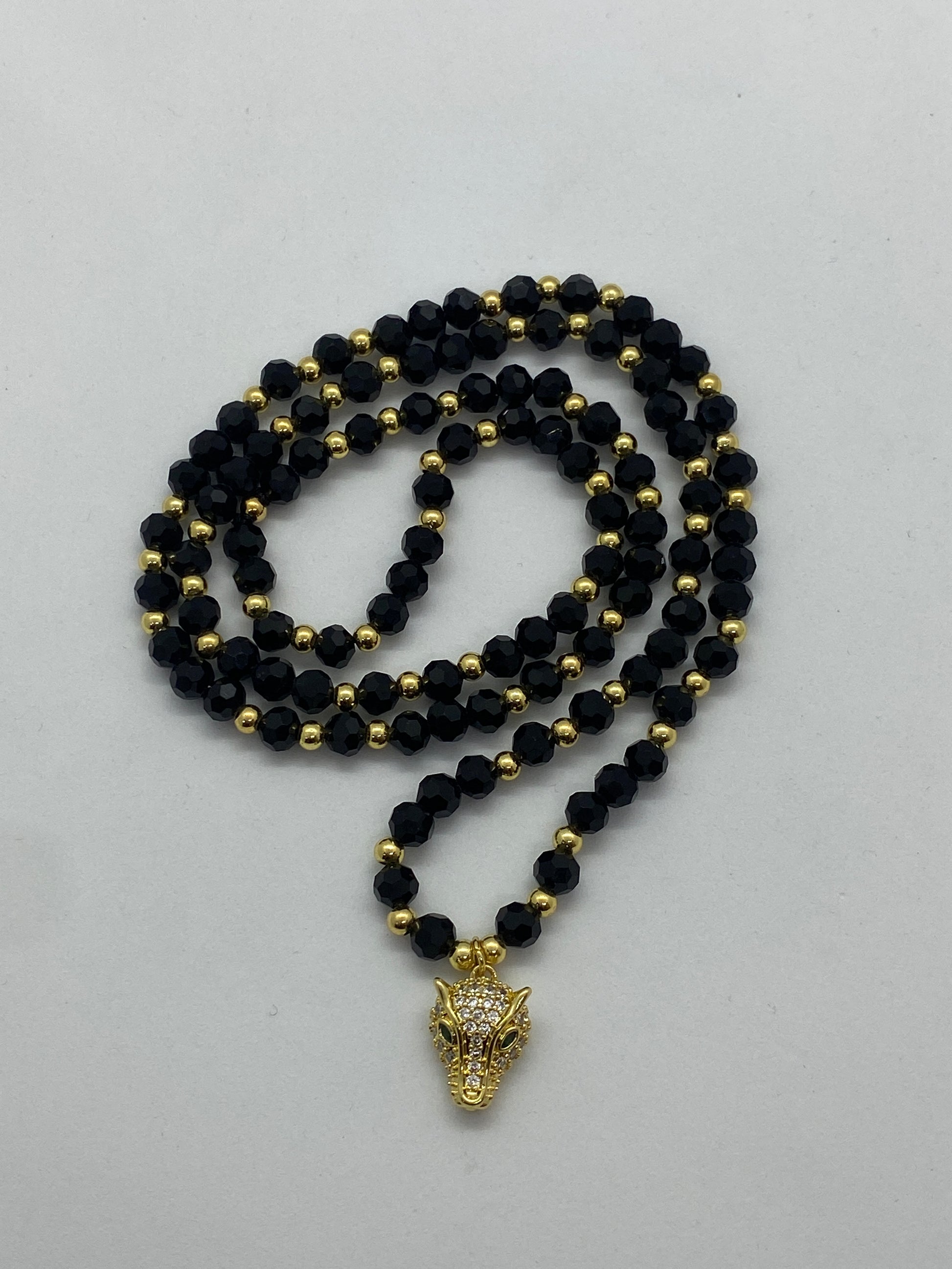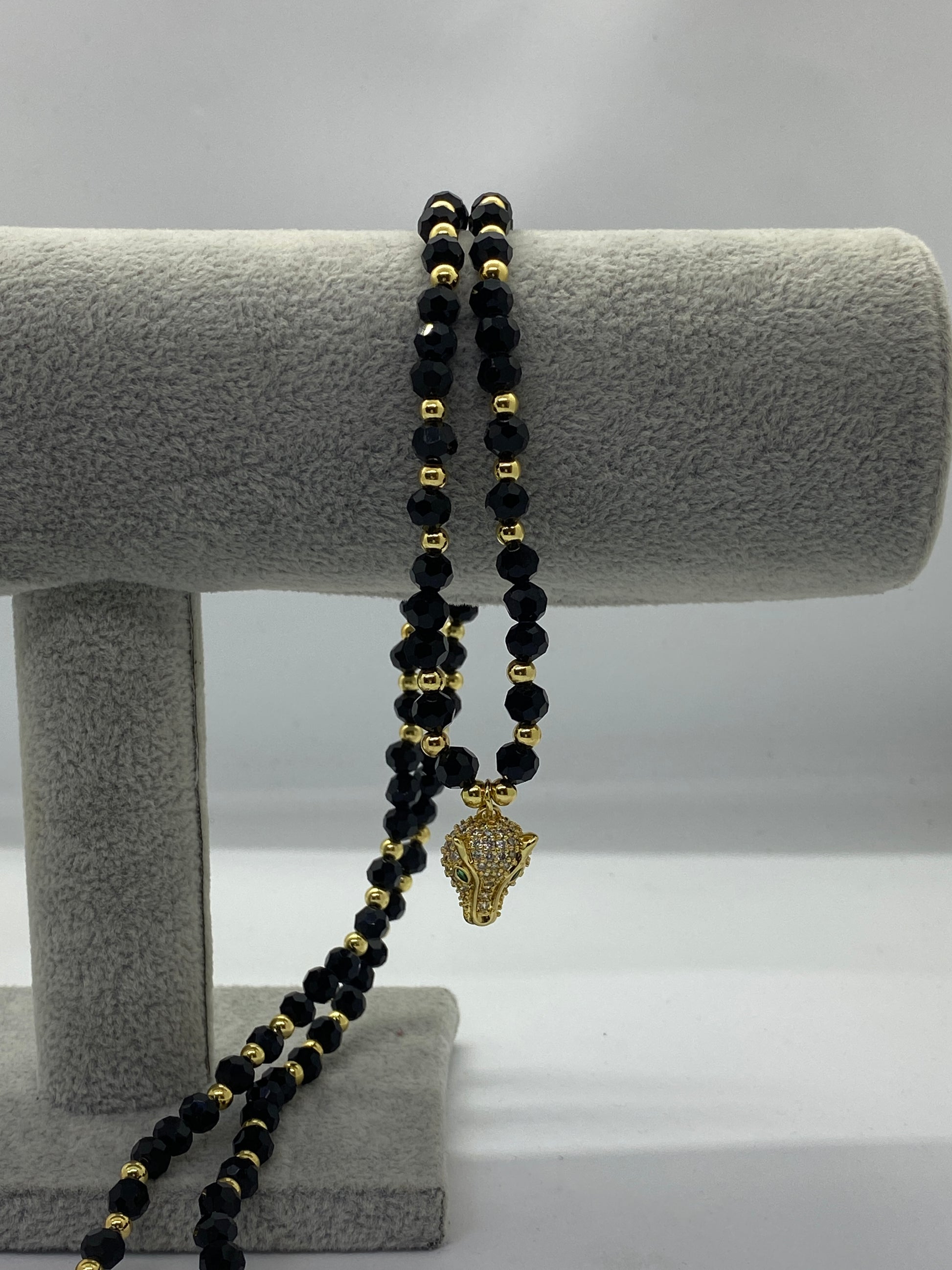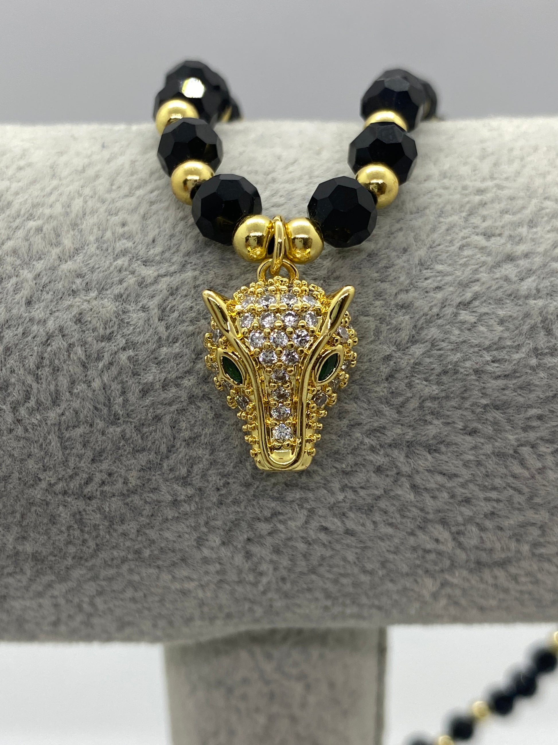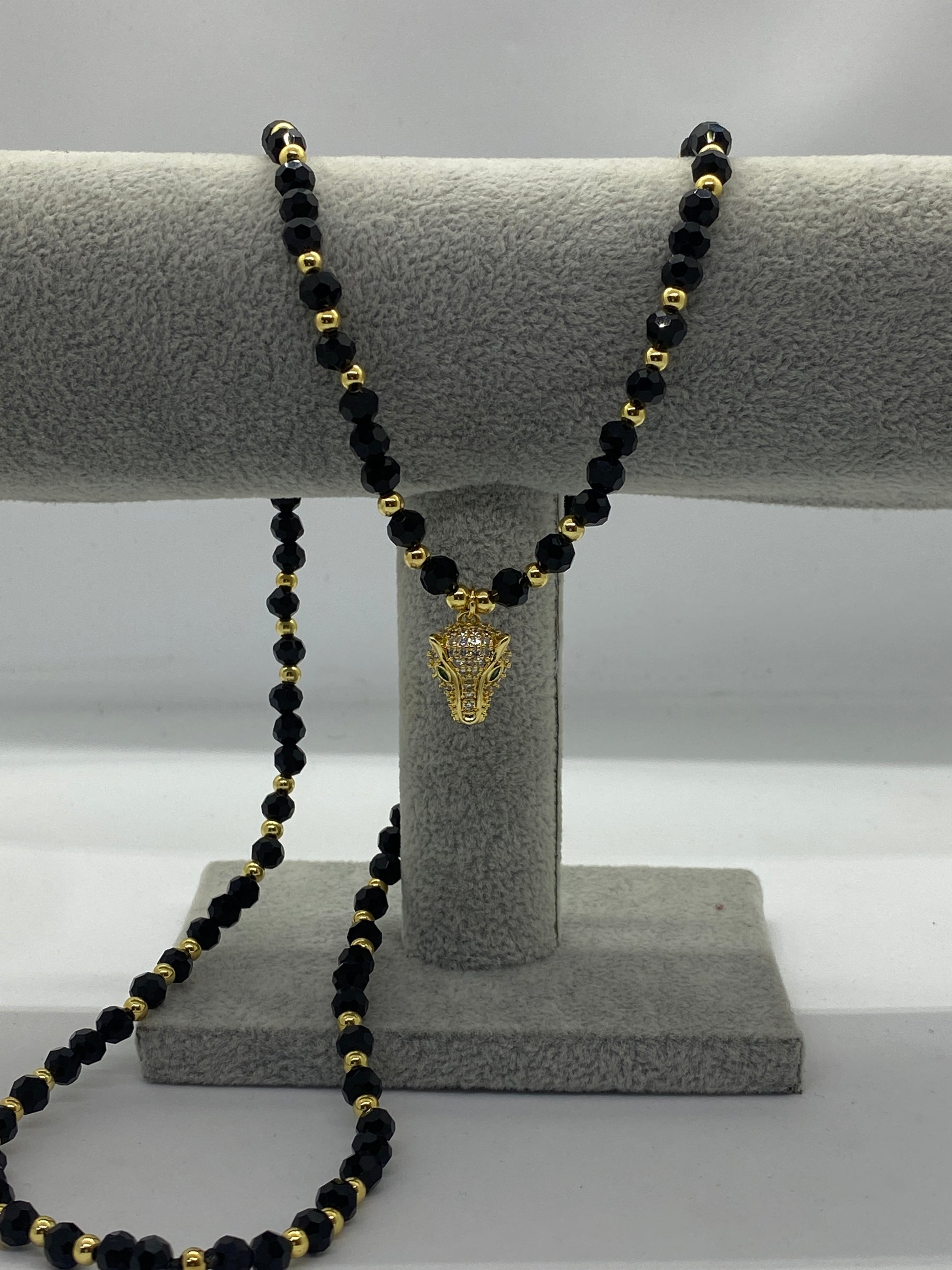 Eleganță enigmatică: lanțul Mystery Wolf combină subtilitatea aurului cu misterul pietrelor negre, emanând o aură de putere și grație în același timp."