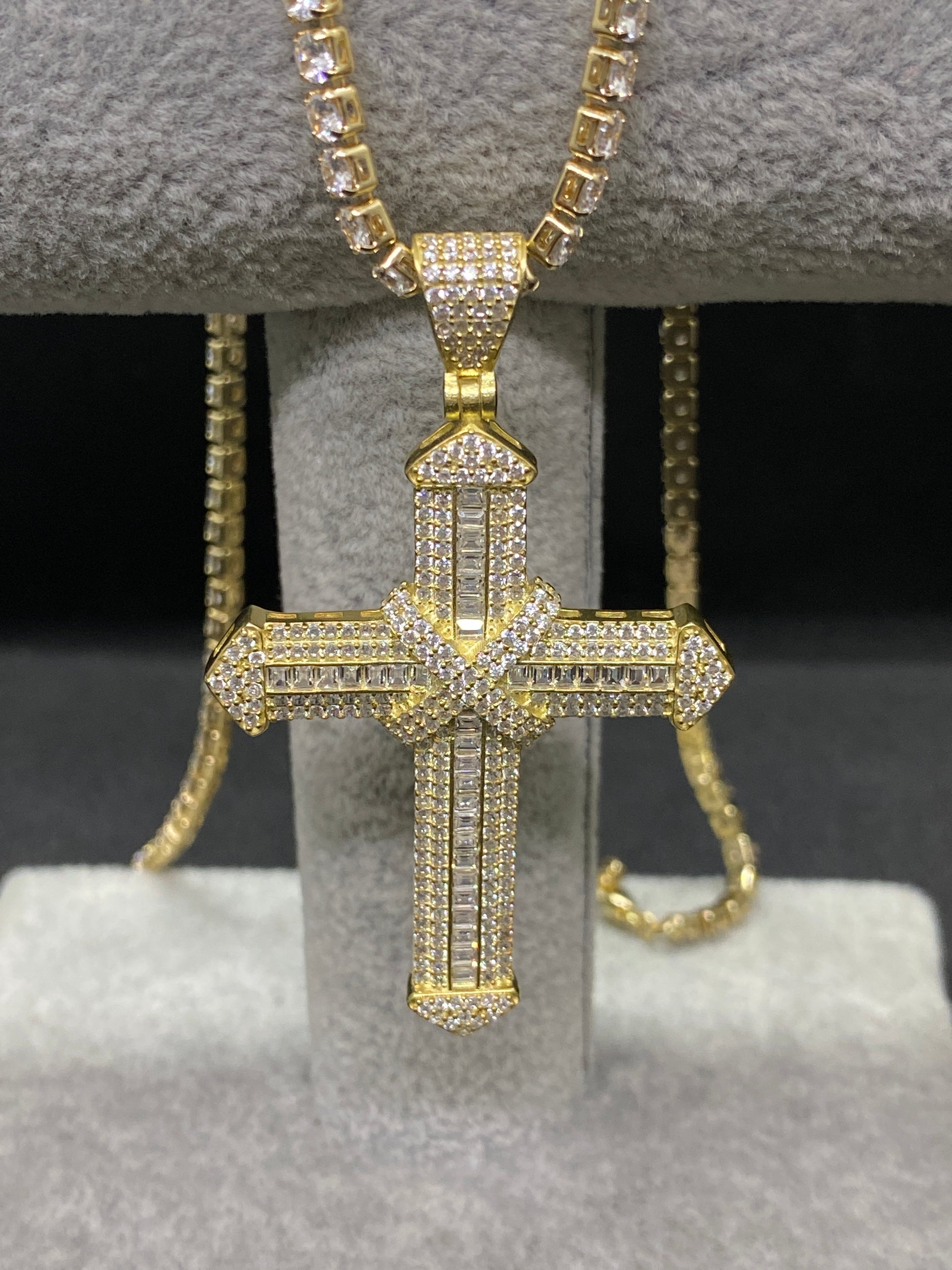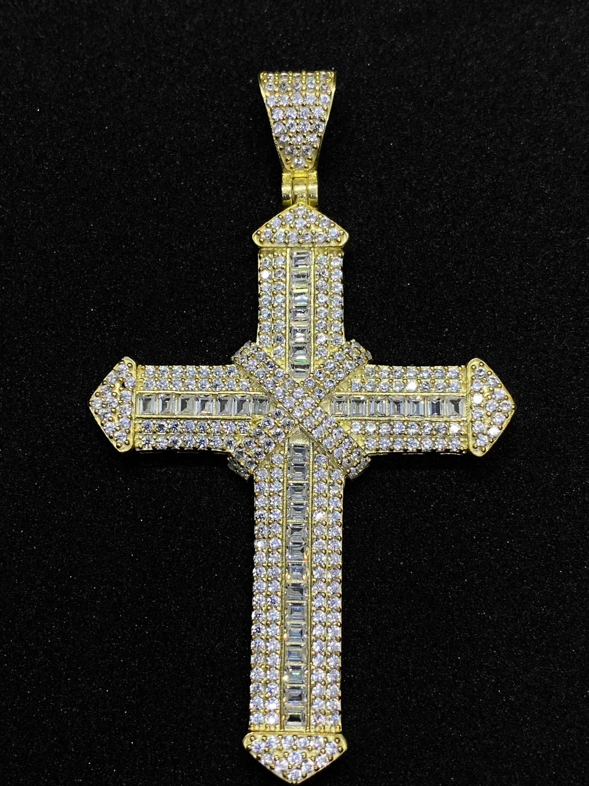Transformă-ți colecția de bijuterii într-o expresie a eleganței supreme cu acest crucifix din argint aurit. Decorat meticulos cu pietre transparente de zirconiu, acest pandantiv este o manifestare a stilului și spiritualității. Pietrele strălucitoare adaugă un plus de luminozitate și strălucire, completându-l cu grație pe acest simbol al eleganței