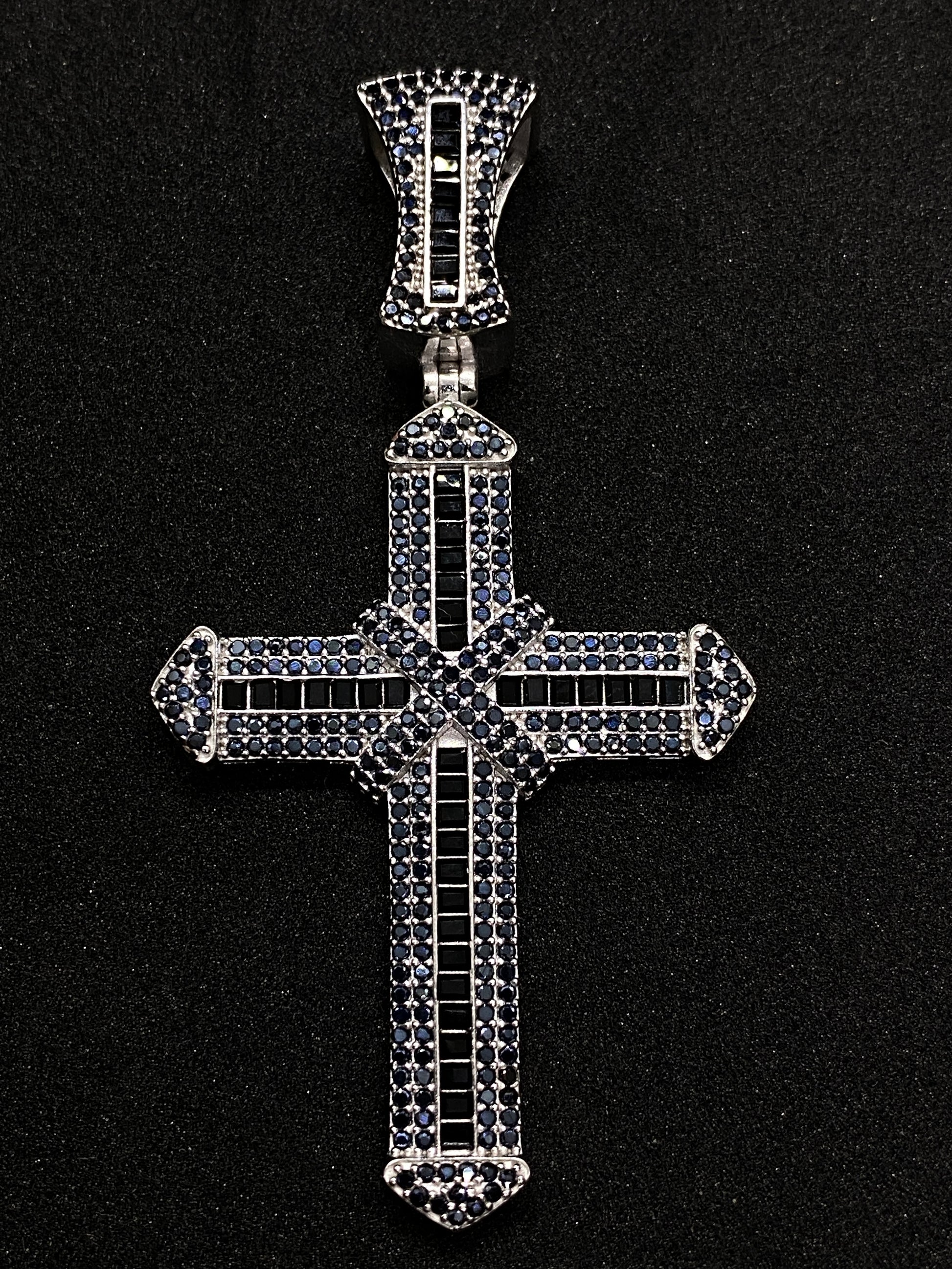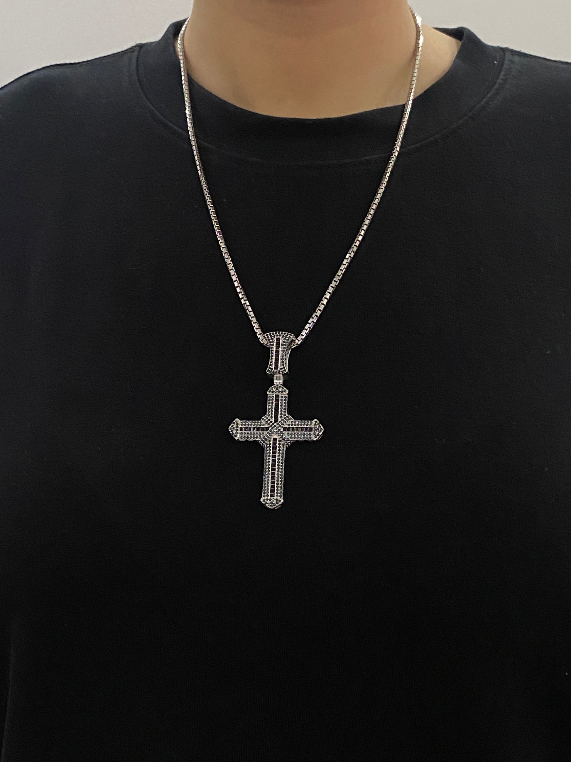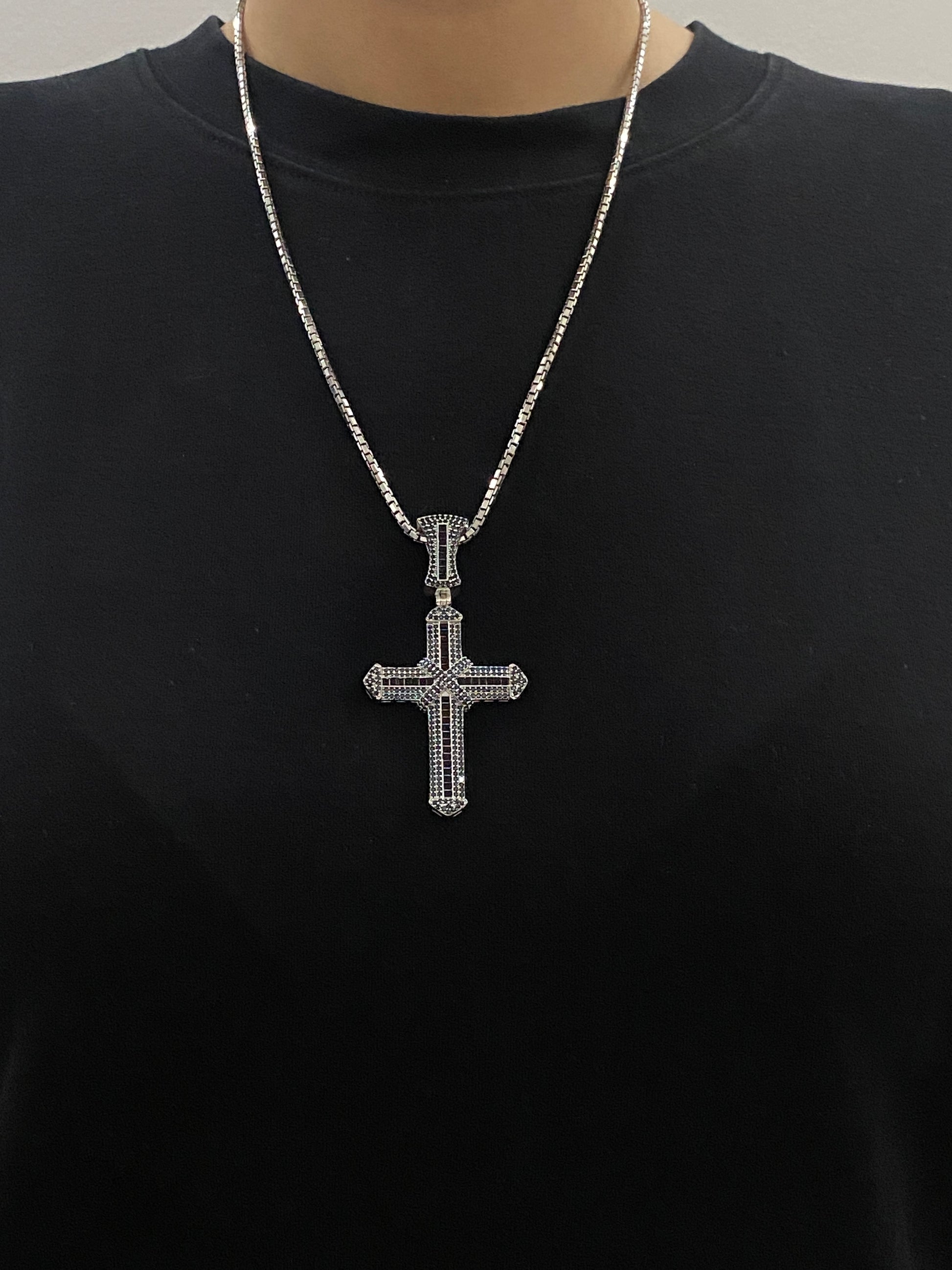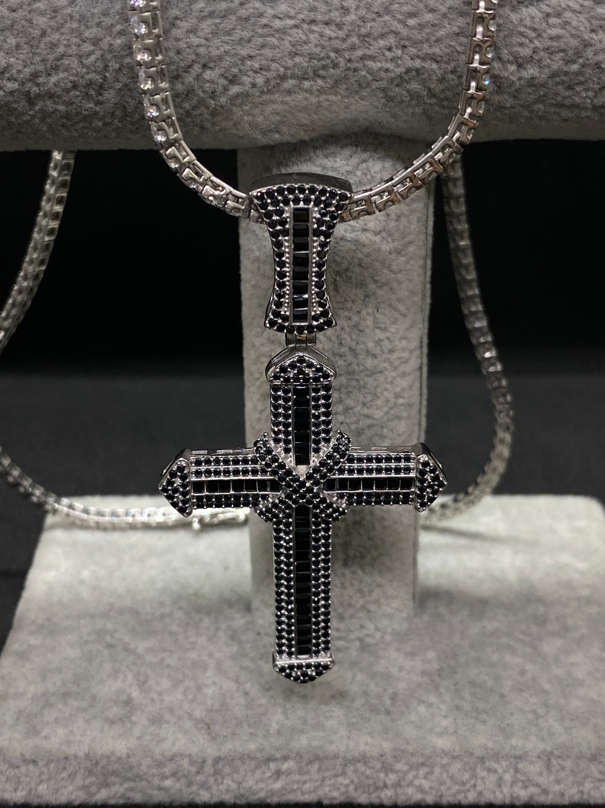 Adaugă o notă de rafinament și eleganță colecției tale de bijuterii cu acest crucifix din argint impecabil. Ornamentat cu atenție și finețe, pietrele negre de zirconiu, strălucitoare și subtile, adaugă o notă de mister și distincție, completând cu grație designul său sofisticat.