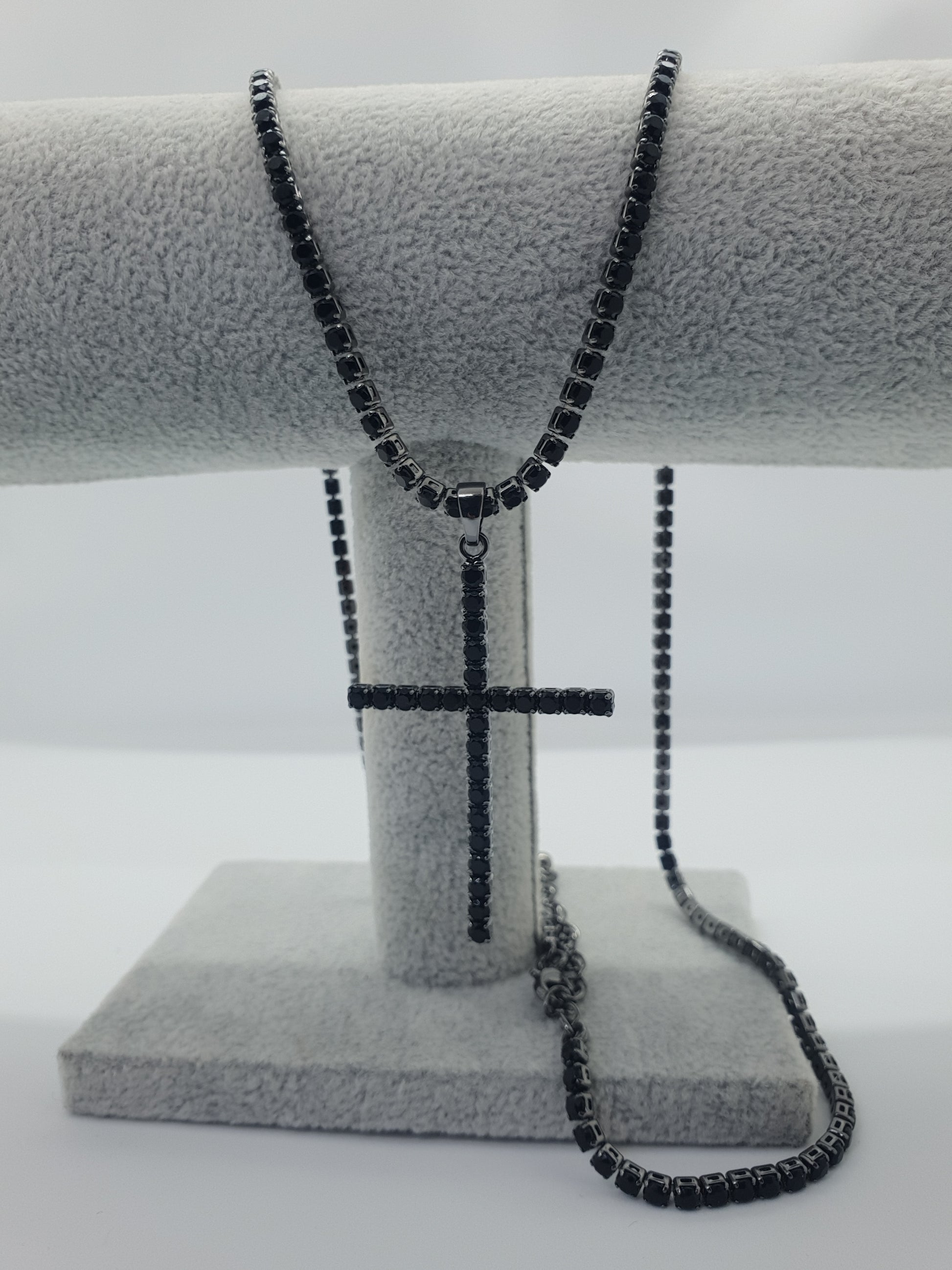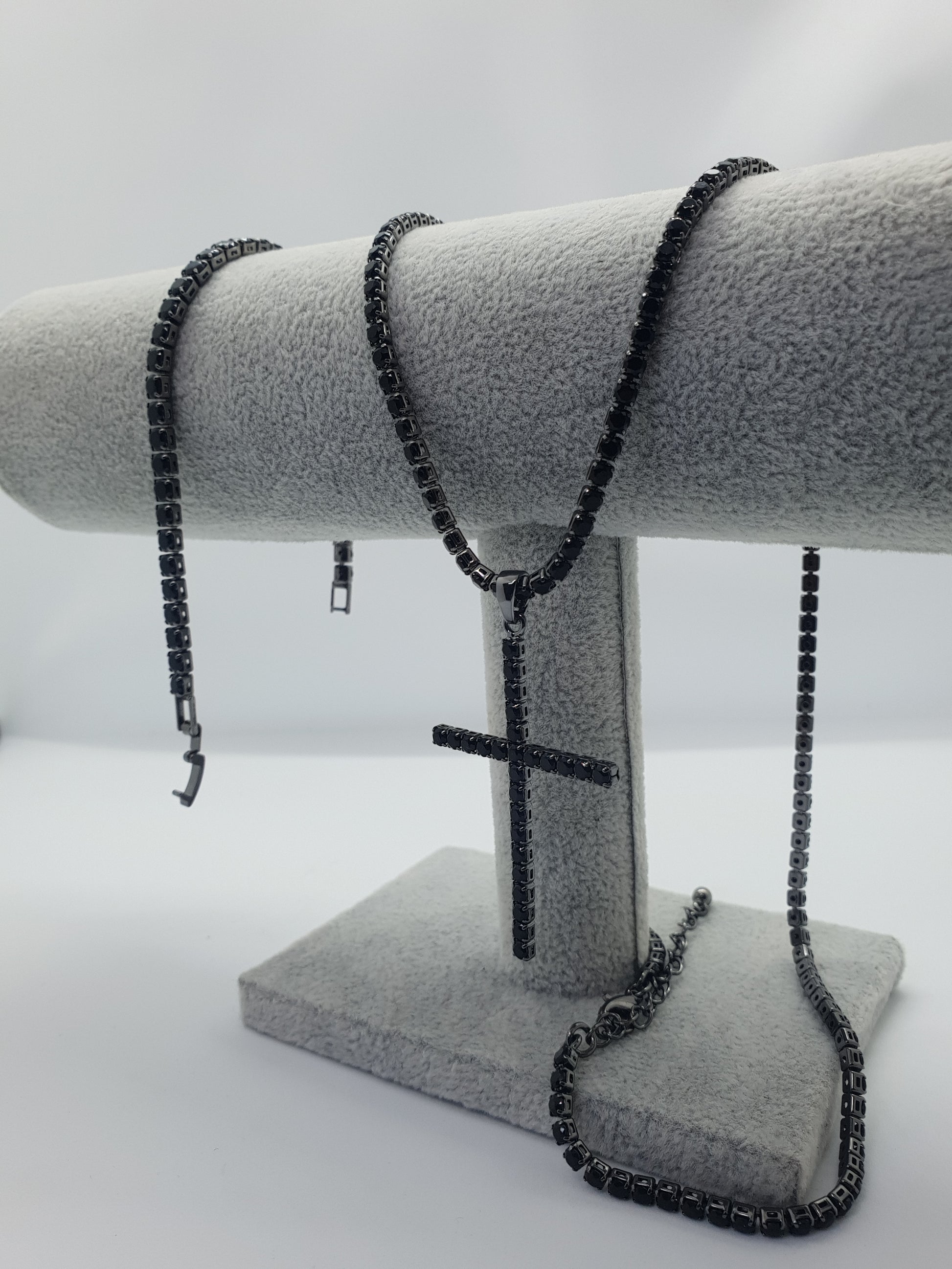 Acest set de colier și brățară Tennis de culoare neagră emană o eleganță clasică și sofisticată. Fiecare piesă este confecționată cu atenție la detalii și cu materiale de înaltă calitate pentru a oferi o experiență de purtat confortabilă