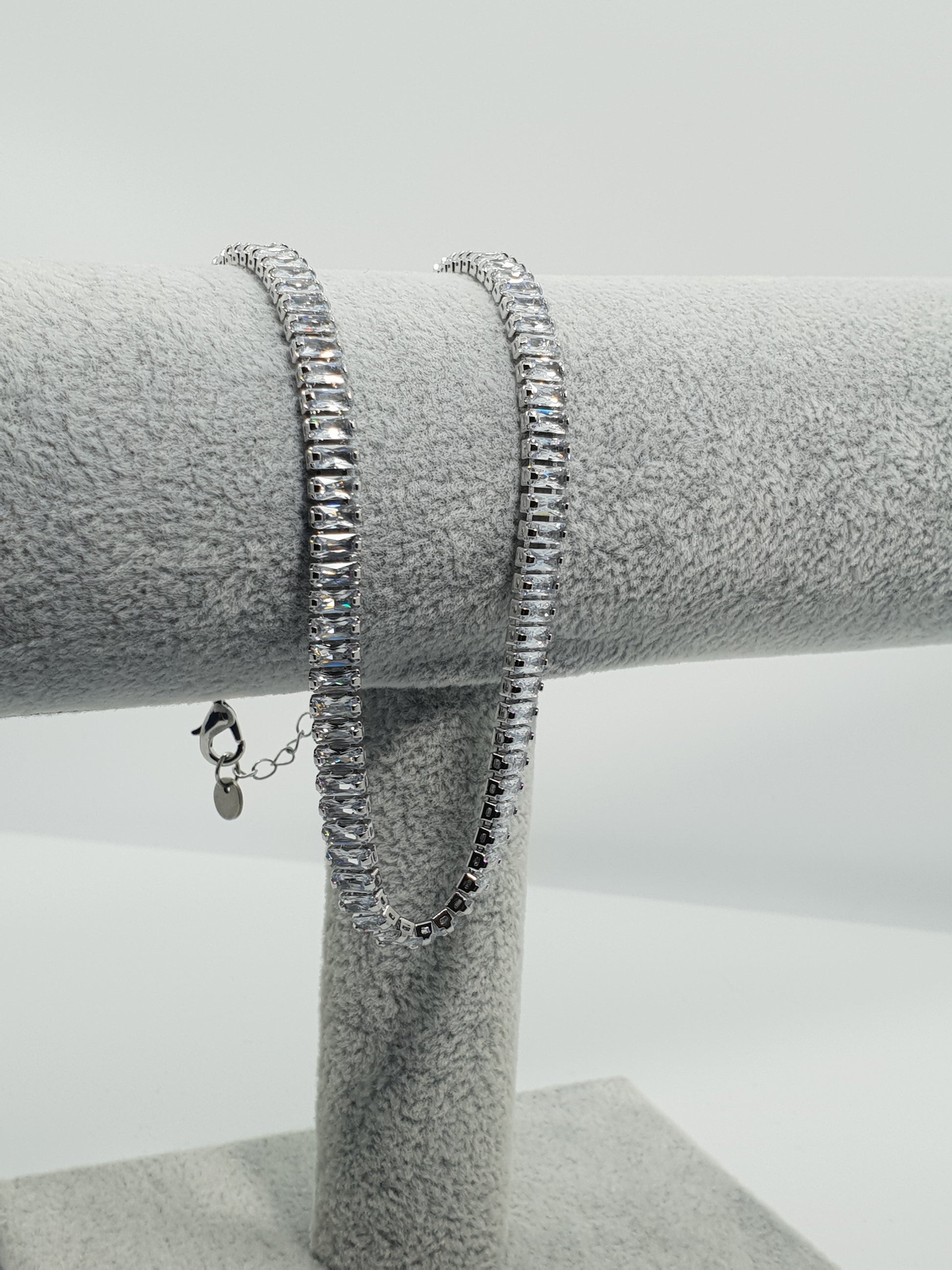 Colierul are un lanț subțire și elegant, decorat cu aceleași pietre de zirconiu strălucitoare ca și brățara, dându-i un aspect corespunzător și armonios. Colierul are, de asemenea, o închizătoare reglabilă, care permite ajustarea dimensiunii pentru a se potrivi perfect în jurul gâtului.
