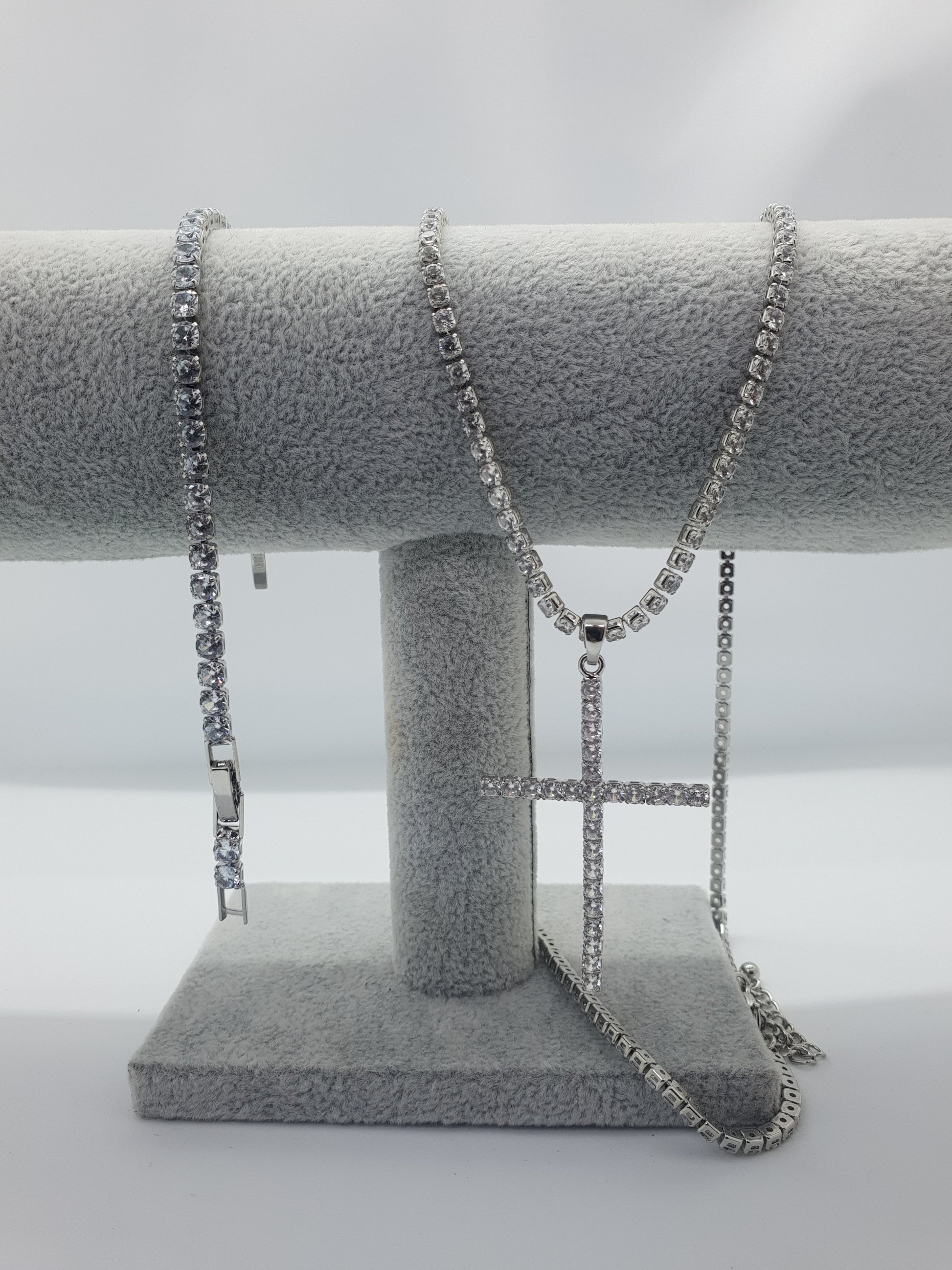 Cu un farmec rafinat și modern, acest set de colier și brățară Tennis de culoare argintie va impresiona cu siguranță prin strălucirea sa subtilă și designul elegant. Fiecare piesă din acest set exprimă o eleganță pură și stilizată, perfectă pentru a completa atât ținutele de zi cu zi, cât și cele mai speciale ocazii.